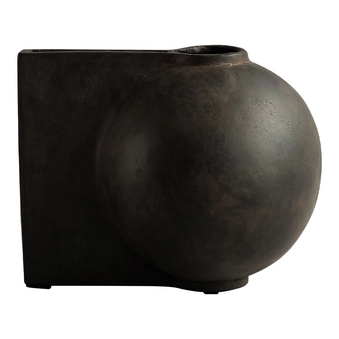 Like a design process frozen in time, the Offset vase is a distortion of the familiar rounded shape being cut. It challenges the idea of a vase and drastically changes appearance depending on the angles it is viewed from: From an imitation of a traditional vase to a sculptural object. Offset is made from fiber concrete and comes in two sizes. As it is a hand glazed natural product, the colours may vary slightly and as it is not 100% waterproof, a bag for fresh flowers is included. Designed by Nicolaj Noddesbo & Tommy Hyldahl.