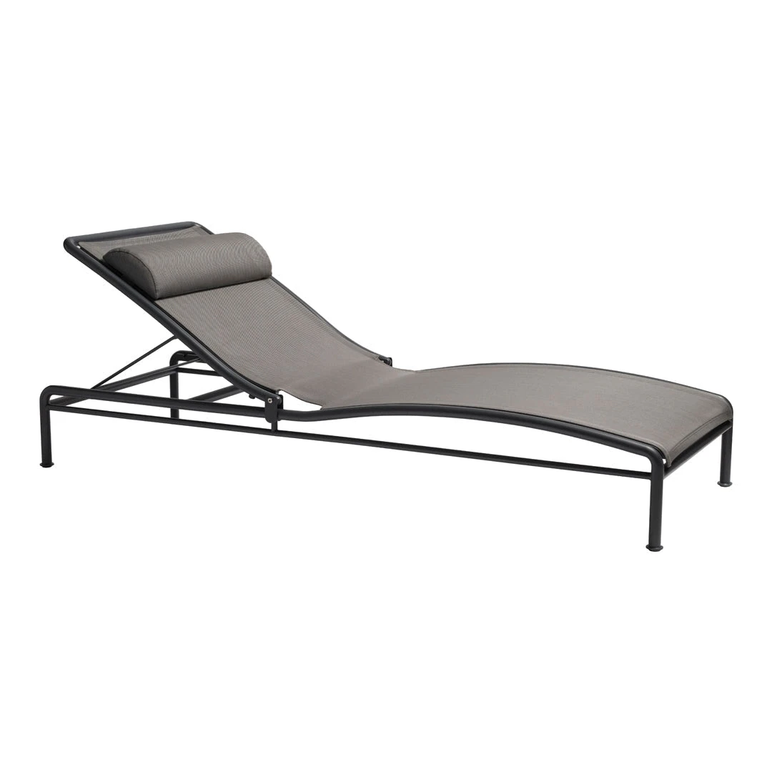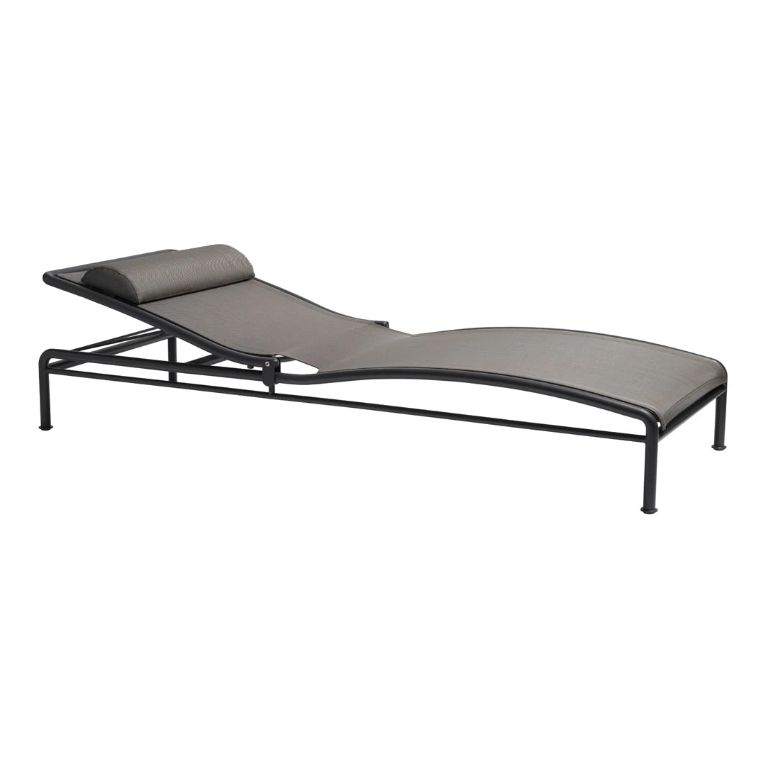 The Arholma sun lounger is a minimalistic sun lounger in a dark grey aluminum frame with Batyline textile.
