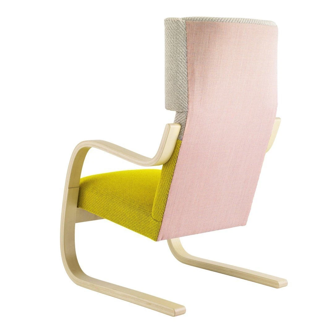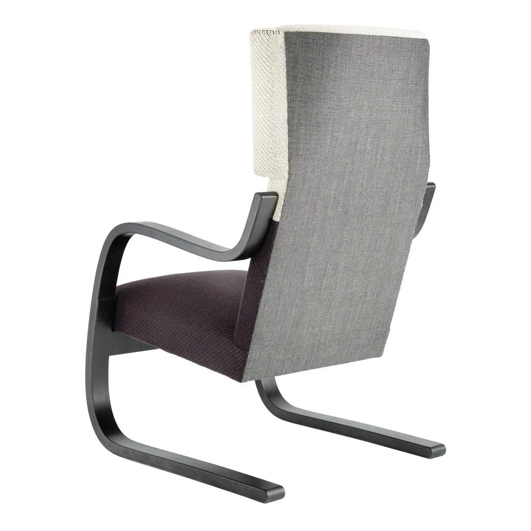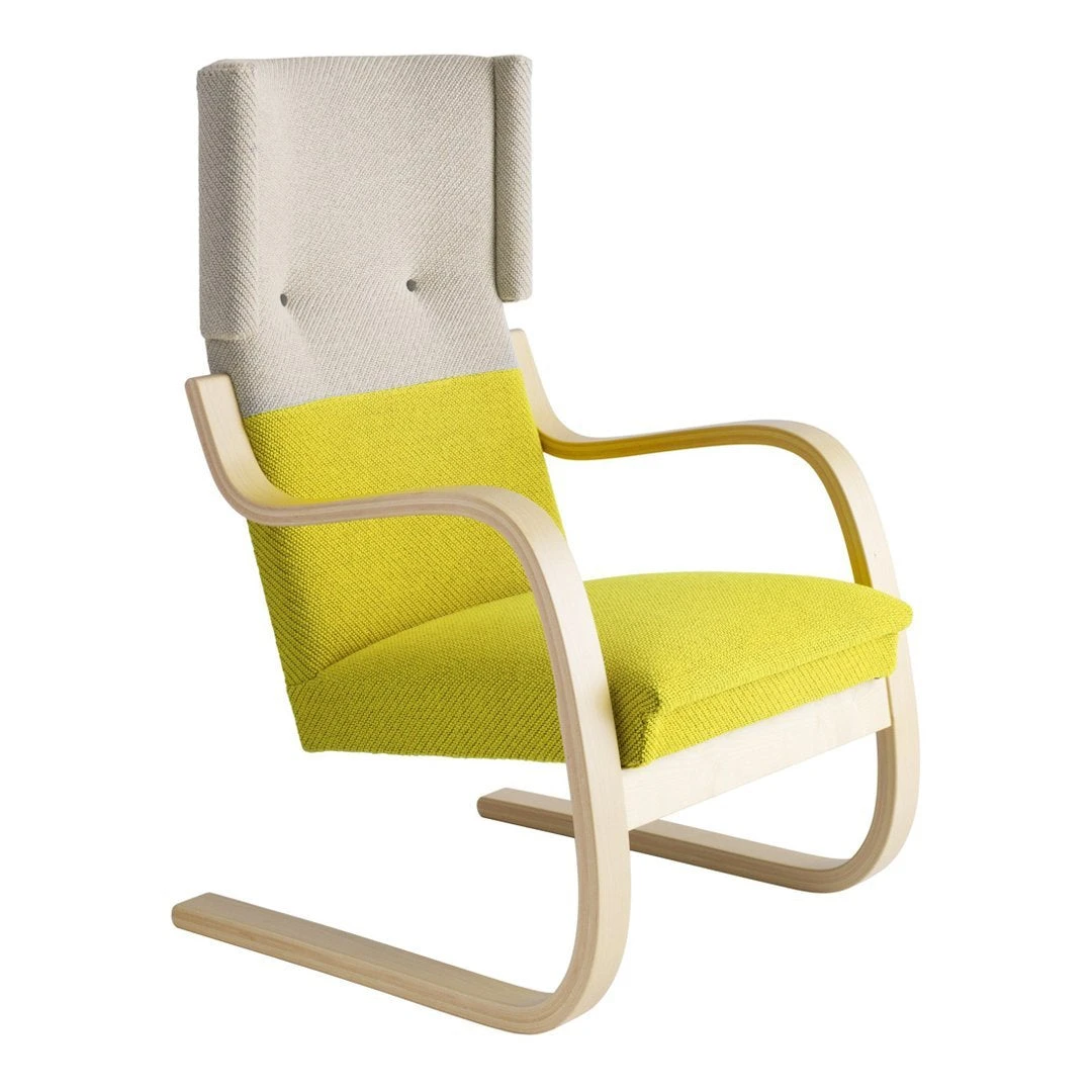 The high-back cantilever Armchair 401 offers maximum comfort. The frame contains a sprung seat, while the back is slightly tilted to provide support for the head and neck. The minimalist wings adjoining the headrest contribute to the distinctive design. Since wood changes over time, the armrests are formed from a single piece that is then split in half, ensuring that as the chair ages, it remains perfectly balanced.