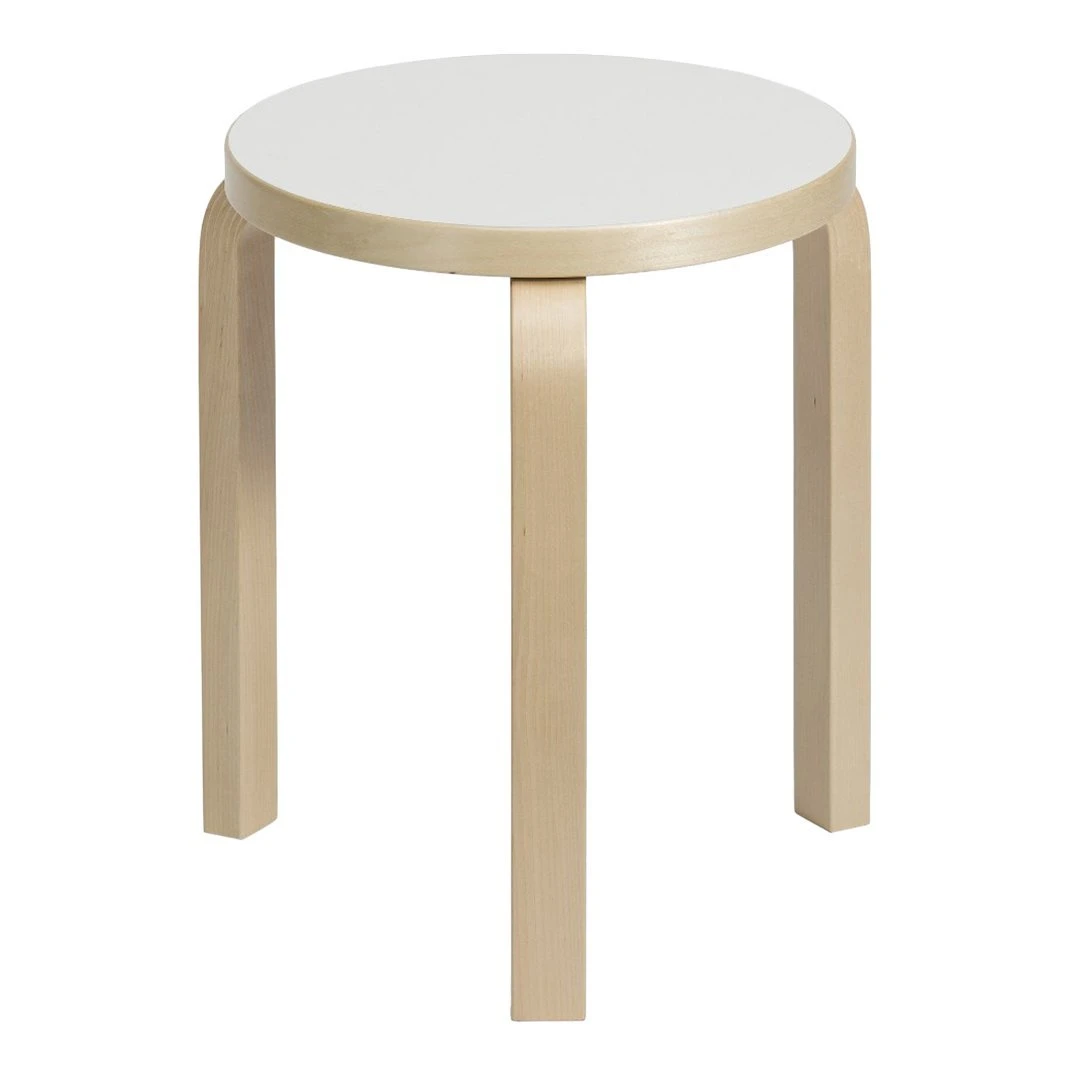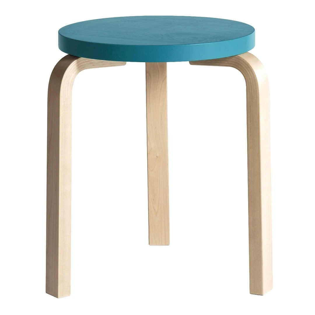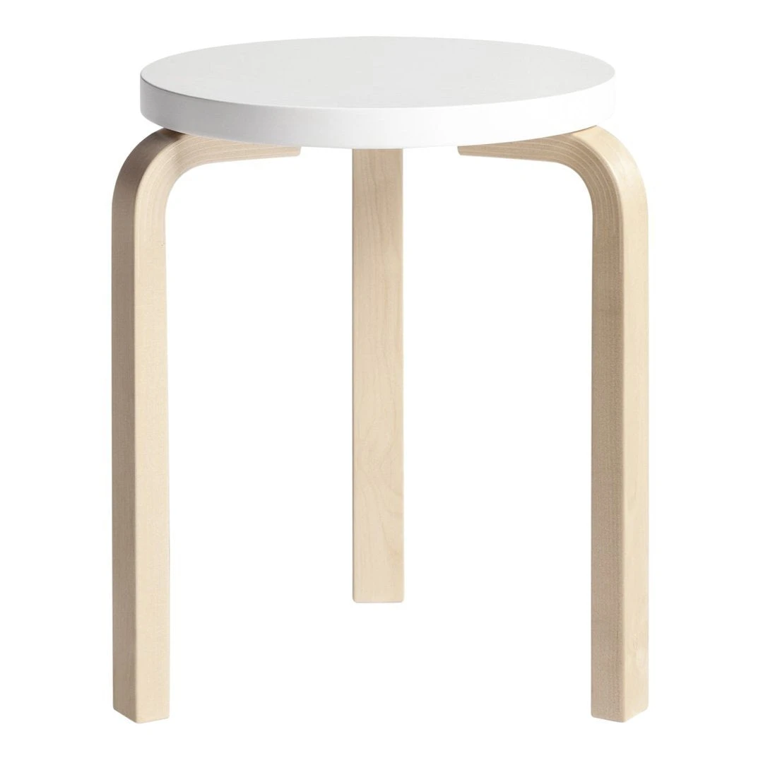 Alvar Aalto’s iconic Stool 60 is the most elemental of furniture pieces, equally suitable as a seat, a table, storage unit, or display surface. The legs are mounted directly to the underside of the round seat without the need for complicated connecting elements. Thanks to its geometry, the stool can be stacked to save space in a spiralling tower sculpture. Manufactured in 42 production steps at the A-Factory in Turku, Finland, Stool 60 is available in a wide variety of colors and finishes. Several million units of Stool 60 and its four-legged cousin, Stool E60, have been sold, making it one of the most cherished products in the history of design.