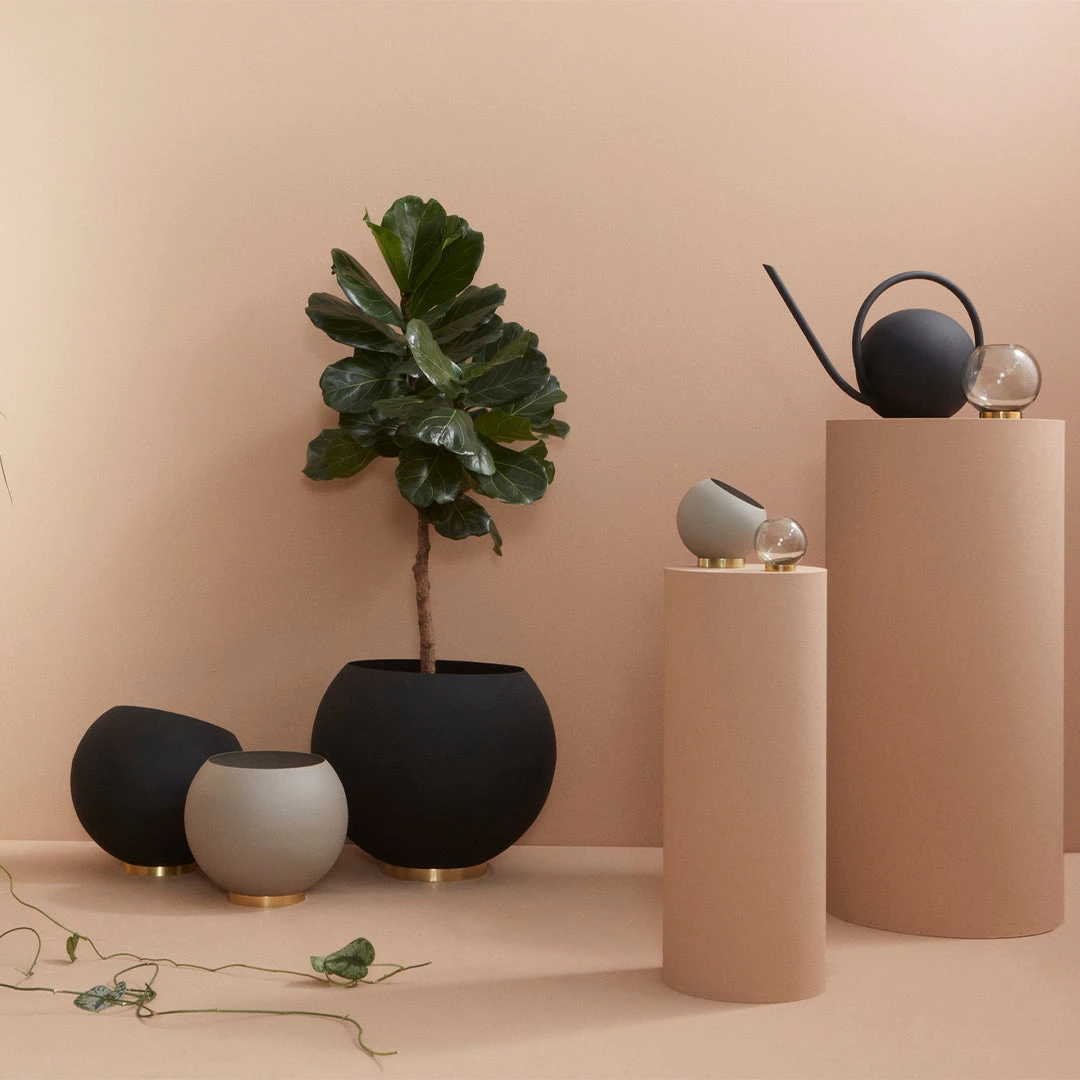 A very popular design has been renewed and revamped. The Globe is now available as a flower pot that goes well inside as outside. The new combination of shiny brass rings and colorful matte Globes are unique and playful. The colors are good on their own but they are even better together as the color tones match each other perfectly. The different sizes opt for many different plants that can either stand up from the pot or hang down for a more dramatic effect. The pots can be used both inside and outside.