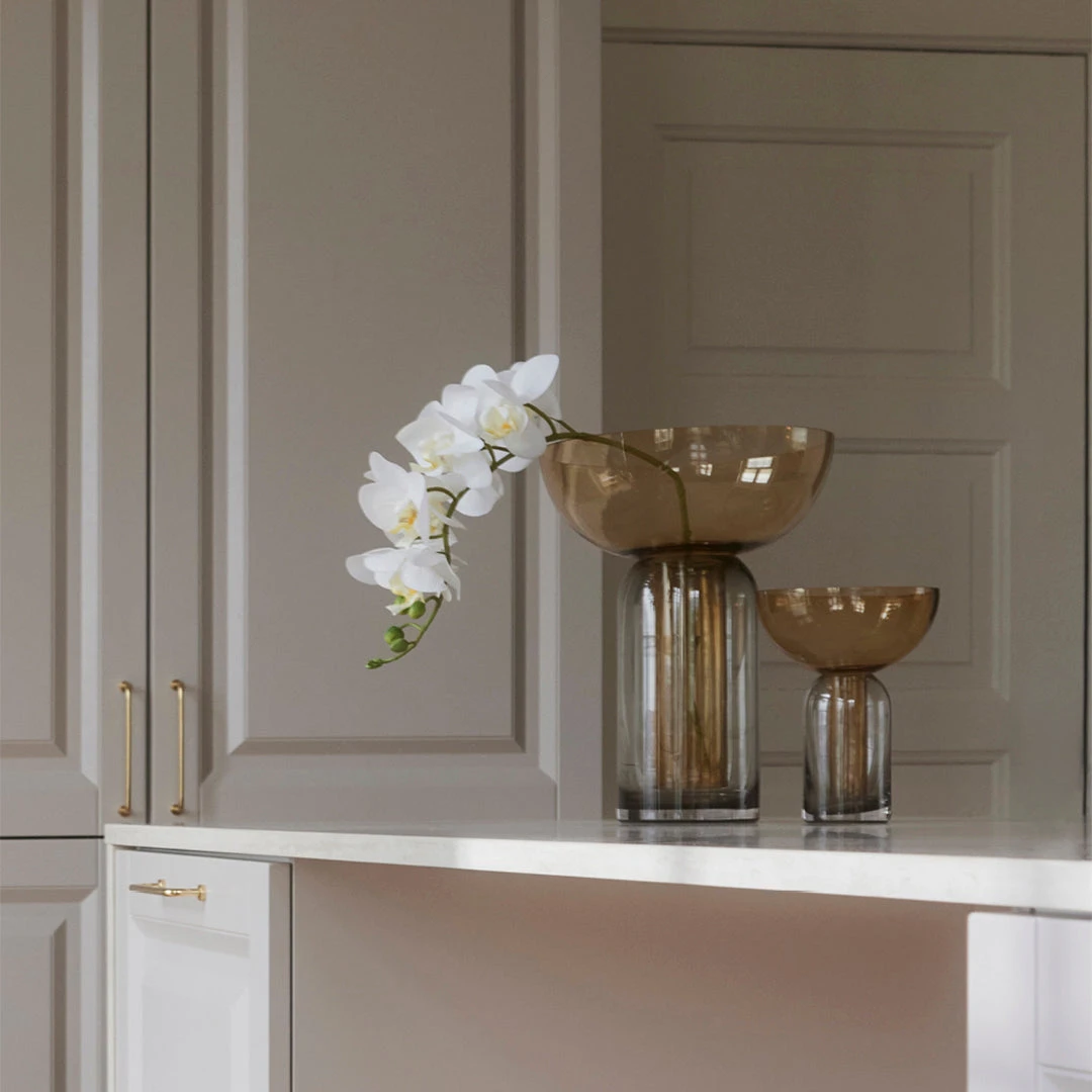 The Torus vase is a unique statement in any home with its exclusive look – perfect for flower decorations, branches and plants. The combination of the two colorful glass pieces turn into an elegant and sculptural vase, making it ideal for everyone who are looking for that extra something special.