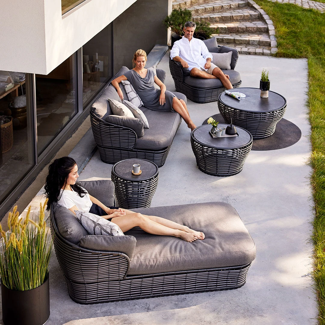 Basket coffee table is designed in collaboration with Søren Rose Studio. A coffee table inspired by the nature with its round shapes providing an organic design expression. Basket coffee table is manufactured in the durable Cane-line Weave® on a hot-dip galvanized steel frame with an elegant ceramic tabletop. The combination of soft curves and edgy ceramic tabletop creates an eye-catching and refined look for your outdoor lounge area. The Basket coffee tables are available in three sizes, which complement each other beautifully.