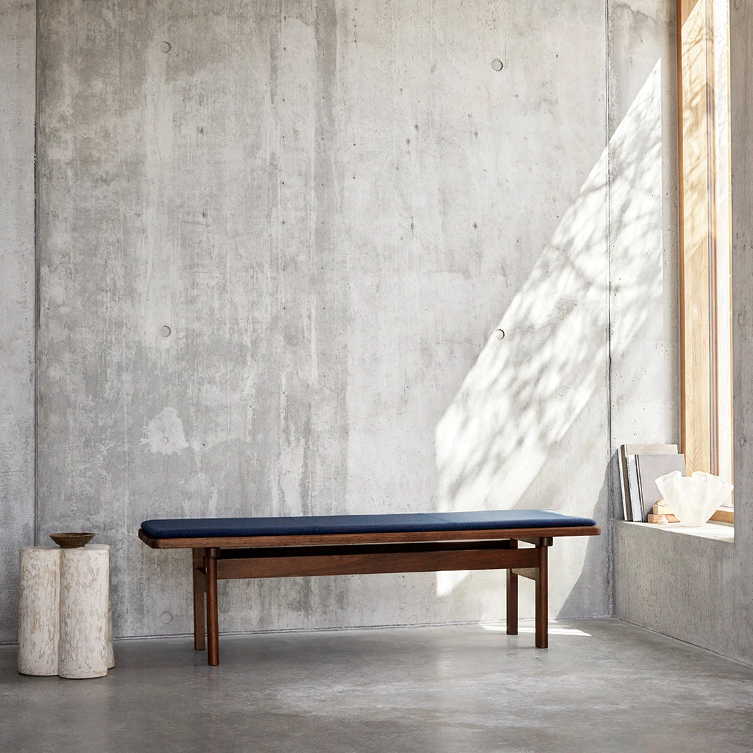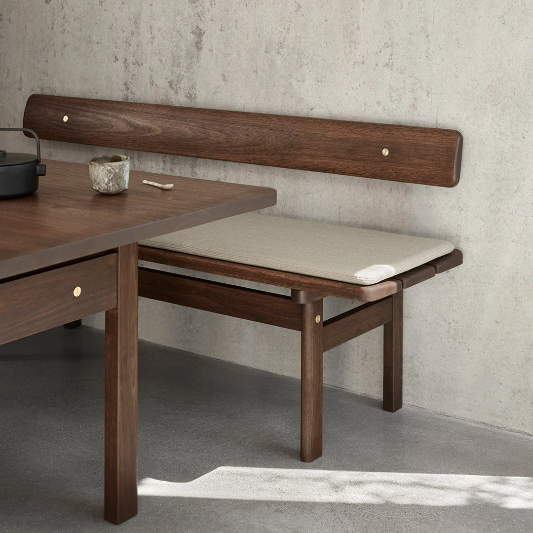 A sterling example of people-first design, Brge Mogensen’s Asserbo Bench demonstrates the Danish designer’s approach to function and form. Perfectly proportioned, the solid, dark-oiled FSC-certified eucalyptus seat has gently rounded edges and visible brushed brass screws. Available with a fixed or wall-mounted backrest, as well as cushions in leather or fabric, the customizable design has a warm and welcoming expression.