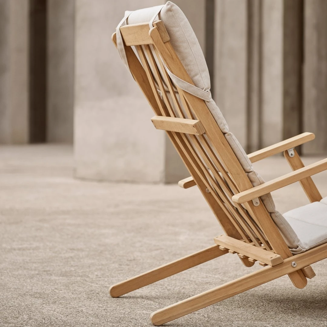 Characterised by clarity of both design and function, Børge Mogensen’s Deck Chair isn’t just a piece to be merely admired from a distance: the FSC®-certified teak design invites us to sit down and relax in the great outdoors thanks to wooden slats shaped to follow the natural curves of the body.