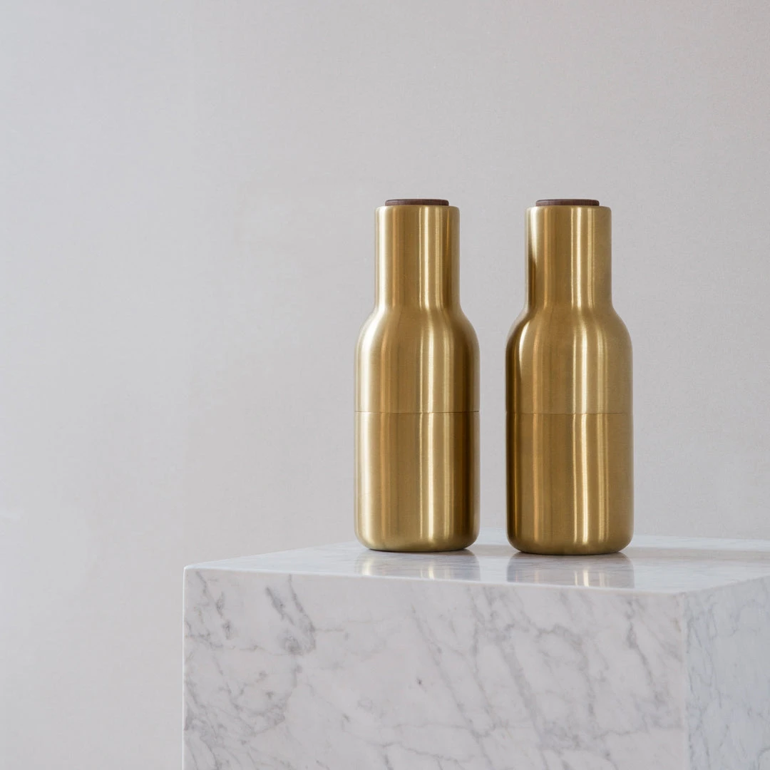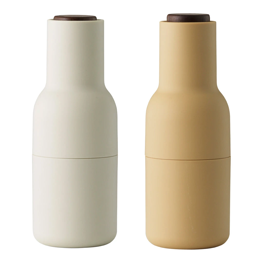 The unique, inverted design ensures that whatever you fill them with only sprinkles out when you grind, leaving no trace on the table or in the kitchen. The Grinders have a bottle-like shape, which is also important to the whole experience. Designer Kasper Ronn, “From a shape like this, you’d expect the content to be something liquid like oil or dressing, you’re not at all expecting dried up spices or nuts. We used this shape to surprise and somewhat trick the users. Sometimes people need a bit of a surprise in order to change their habits”. Menu Bottle Grinders have a rounded base that fits perfectly into the hands, and have a rubber surface that’s easy to grip and to clean. They come in a range of beautiful, soft Scandinavian colors. Bon app√©tit.