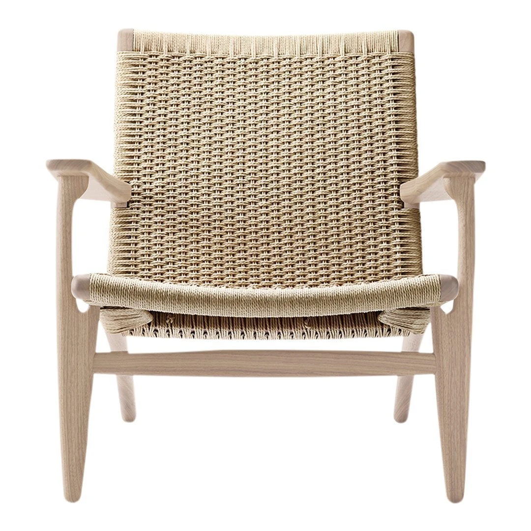Hans J. Wegner’s CH25 Easy Chair’s special leg profile probably give this Wegner classic chair its most distinctive feature. The broad armrests add to the comfort of the CH25 chair and make this Wegner chair easy to get up from, even with its low seating and reclining back.