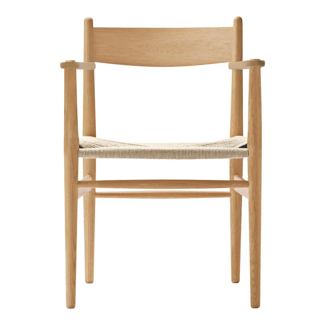 The Wegner CH37 Chair was designed in 1962 and is characterized by its simple design and excellent back support. It is a small chair with vertical legs, a plain back and its seat of rope woven into a simple pattern. Its modest exterior tends towards the anonymous. The delicate appearance might lead to the false conclusion that CH 37 is not a sturdy chair. It was, therefore, decided to have the chair tested thoroughly at The Technological Institute of Denmark before its release. History says that the chair went through the required 60.000 rockings without problems, but that the staff forgot to turn off the machinery before going on weekend. On Monday morning they found the test equipment broken down while the chair still was in one piece.