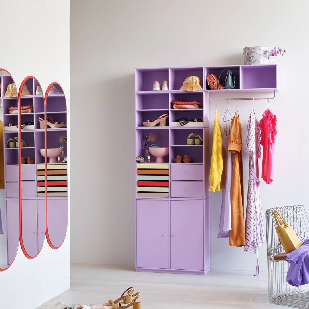The COAT hat shelf is perfect for keeping coats in the hall or wardrobe. COAT is a modern take on the hat shelf consisting of a cabinet with two compartments as well as a clothing rack attached underneath. The hat shelf is perfect as a storage solution for the small hall or as a versatile wardrobe solution for the bedroom. The shelf COAT is available with suspension rail in all Montana’s 40 colours.