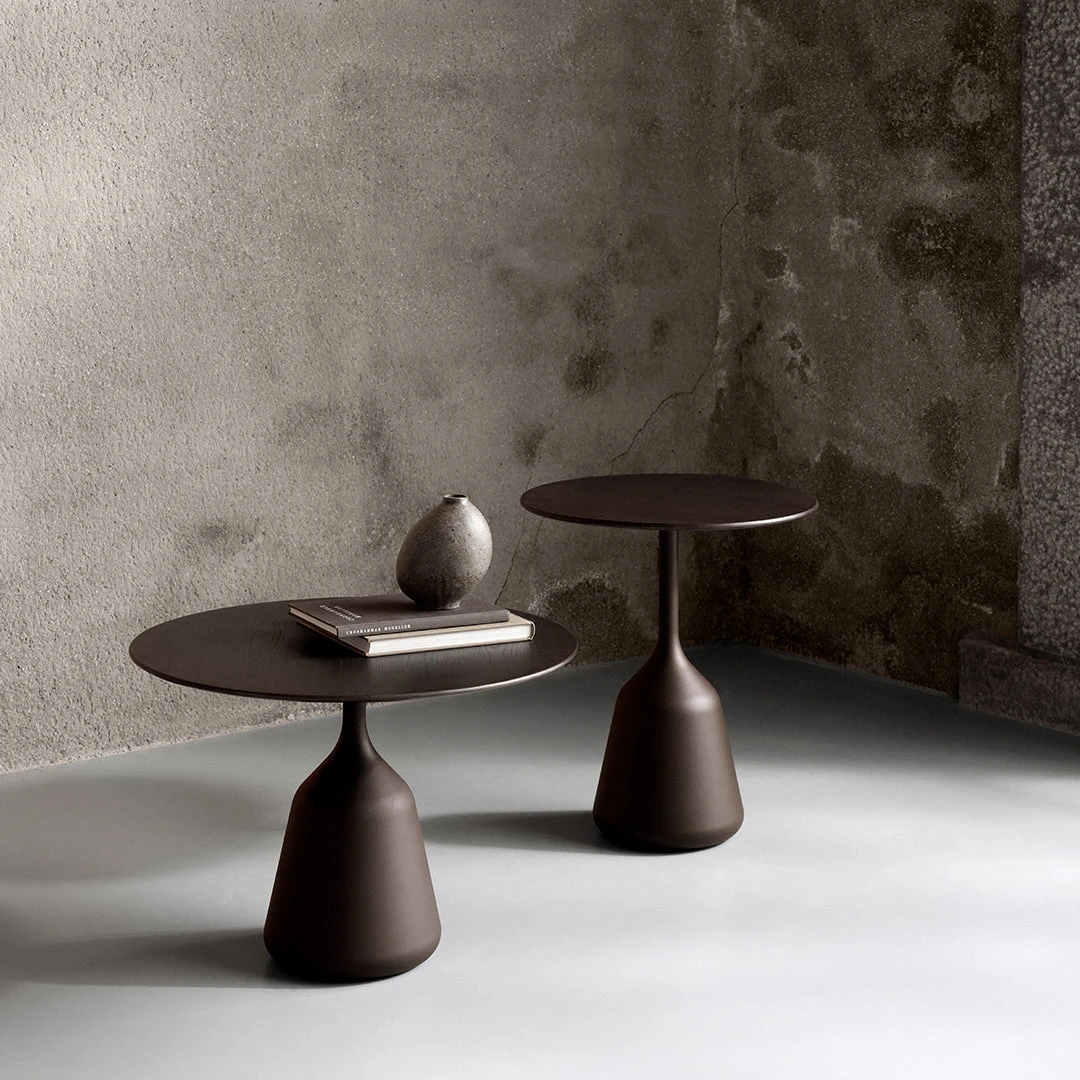 Available in two complementary sizes, the Coin table effortlessly fuses circular and conic-shaped components to create a language of soft geometric minimalism. This thoughtful balance of proportions allows the table to function as either a striking standalone accent or as part of a nested composition, creating dynamic visual relationships when paired together in curated interior landscapes.