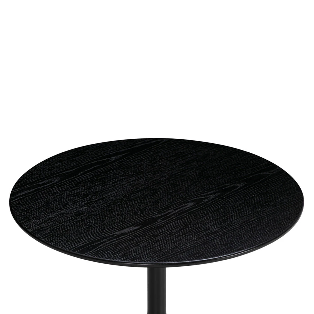 The perfectly circular tabletop continues this exercise in restrained elegance, offered in either practical black laminate or premium stained oak veneer with solid oak edges. This careful material selection provides versatility for various interior styles, from contemporary minimalist to warm Scandinavian modern.