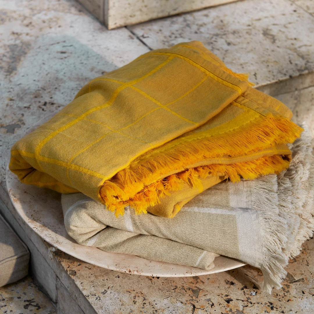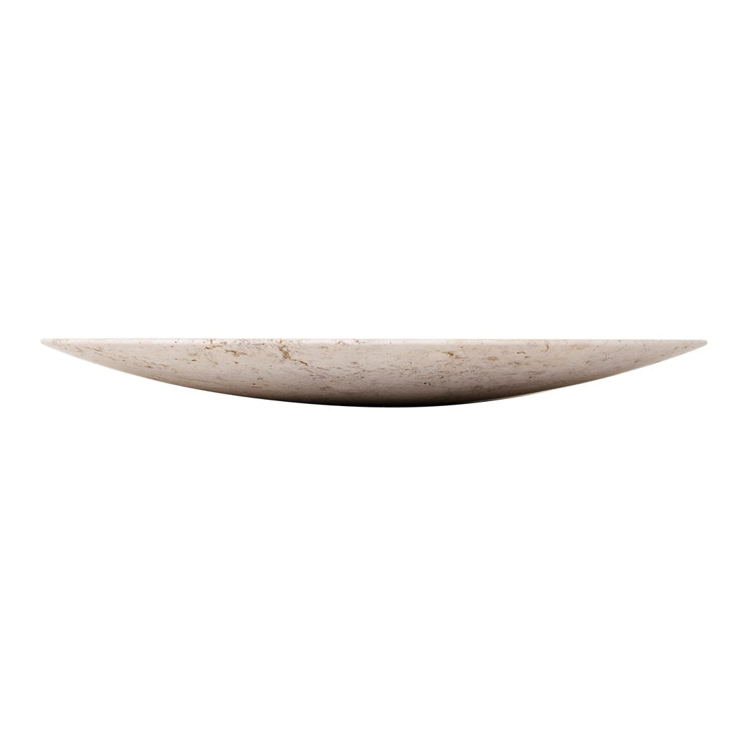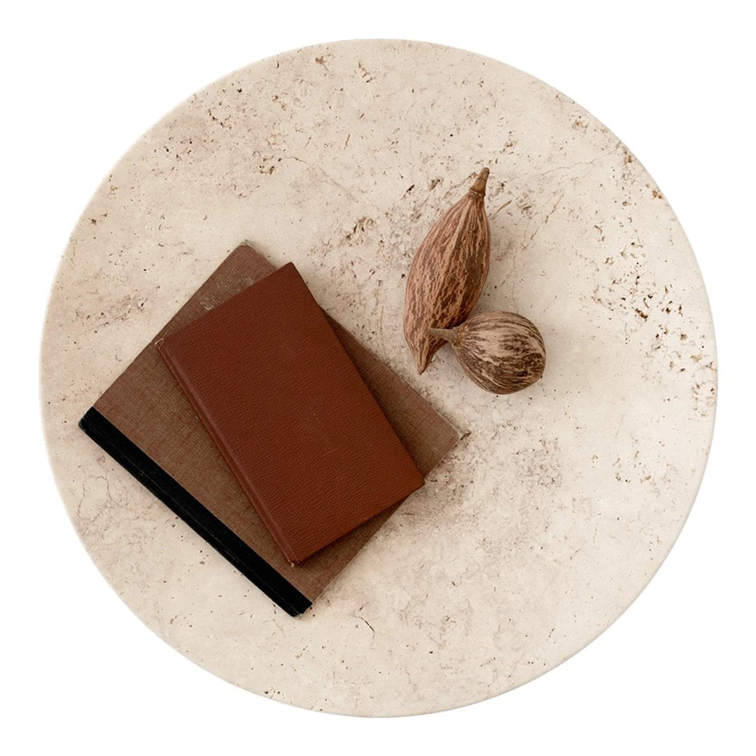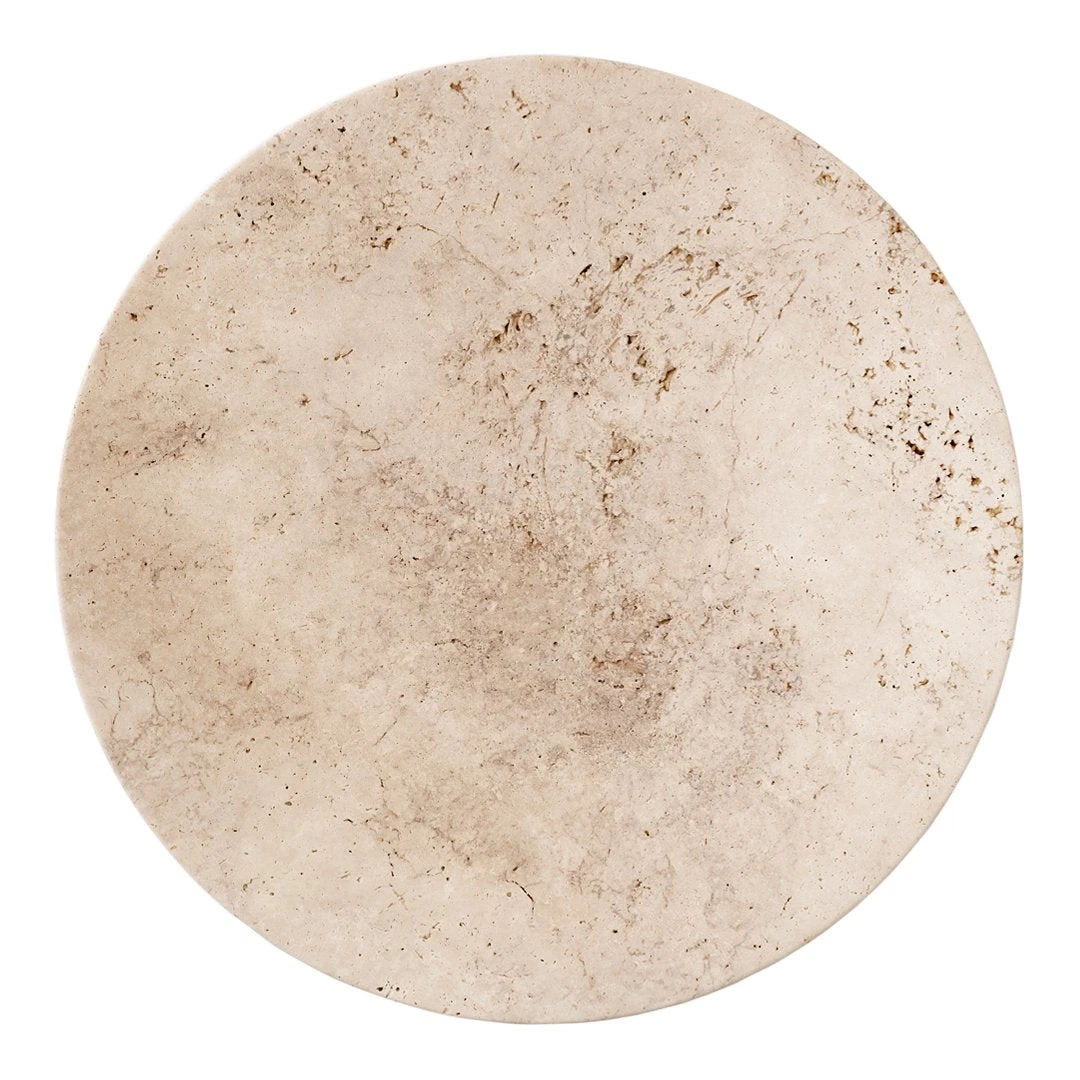 Designed by Space Copenhagen, this hand-polished plate sits within the Collect series, a curated line of beautifully crafted soft furnishings and home objects. Crafted from beige travertine rock, each plate is a uniquely textured piece with its own natural patterning.