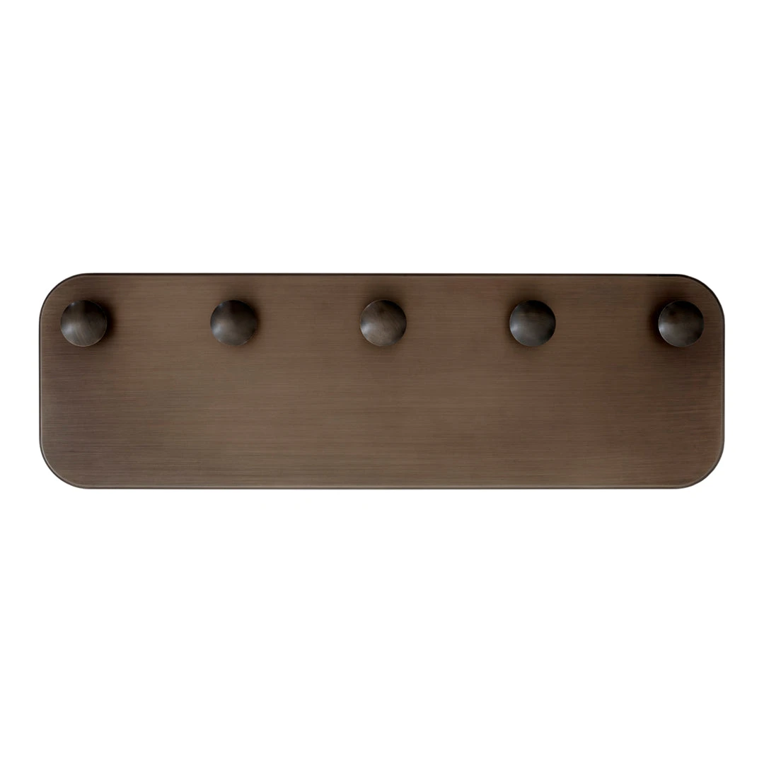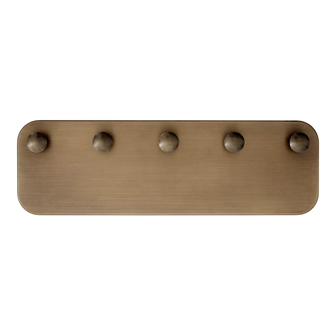 This hand-polished coat hook sits within the Collect series, a curated line of beautifully crafted soft furnishings and home objects. Designed by Space Copenhagen, it comes either as a single unit or in a row of five. It is available in three colours: Tarnished Silver; Bronzed Brass; and Aged Brass.