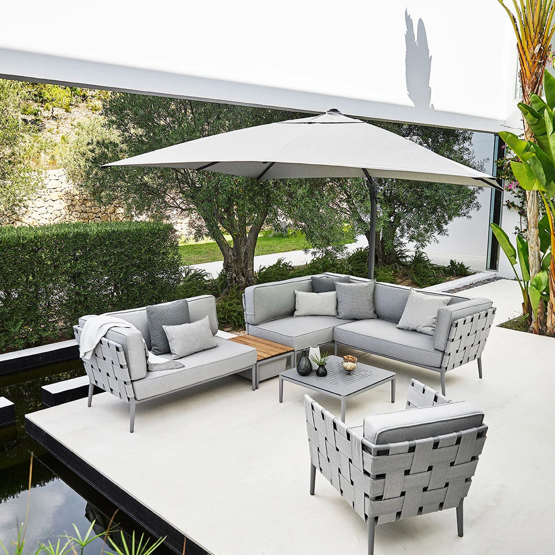 Conic Box fits perfectly with all Conic sofa modules and can be placed exactly where you want it in your lounge group. The product is designed to create an elegant table that radiates a warm feeling. The table top is made of teak, which is approved and cultivated according to the SVLK certification system. Conic box table is a multifunctional table which can also be used for storage of scatter cushions, blankets or books and magazines. The table requires minimal maintenance with teak oil if you want to preserve the colour and glow. Alternatively, the tree can be left without maintenance, which gives the tree a light grey patina expression after some time. Use the product as a side table for a glass of wine or a cup of coffee.