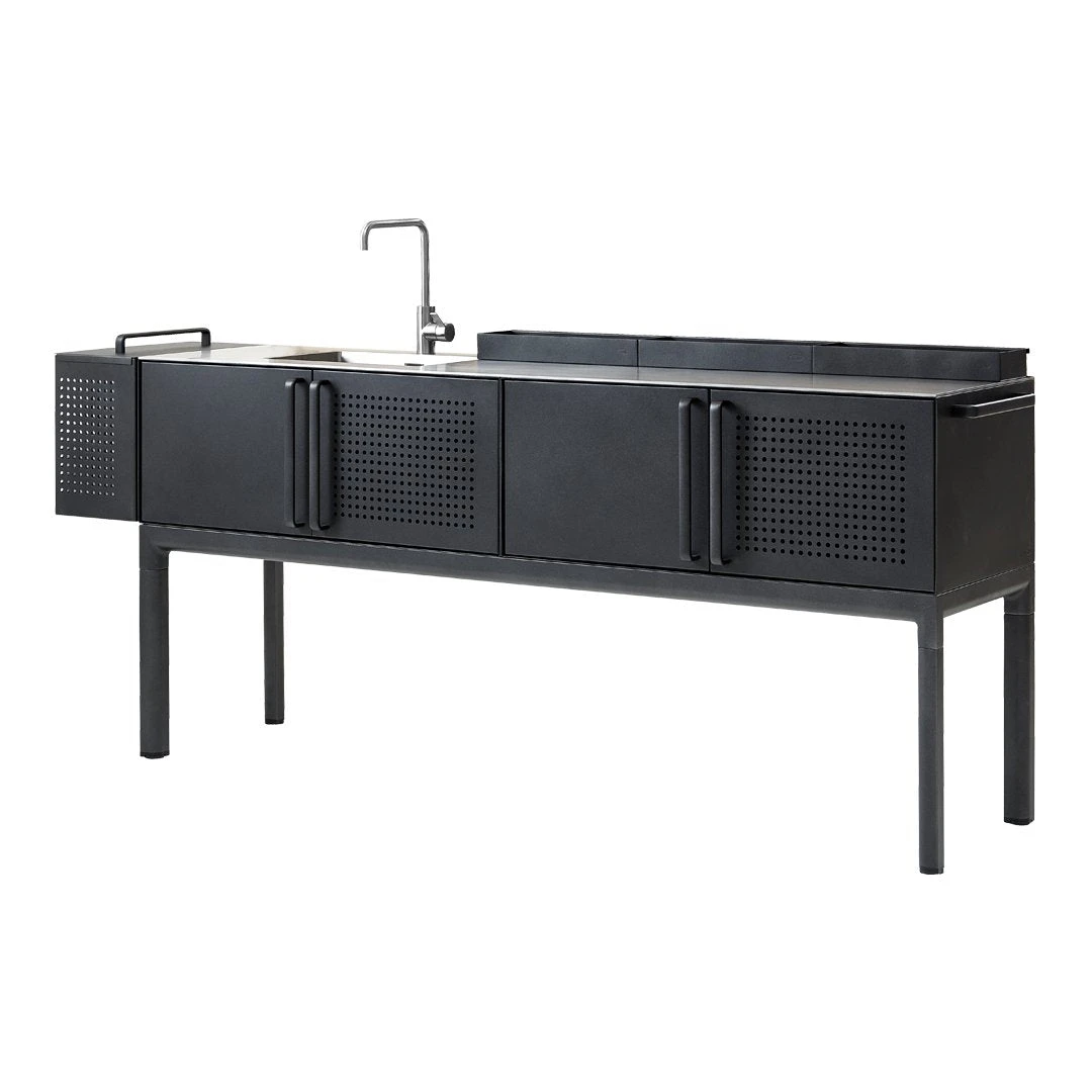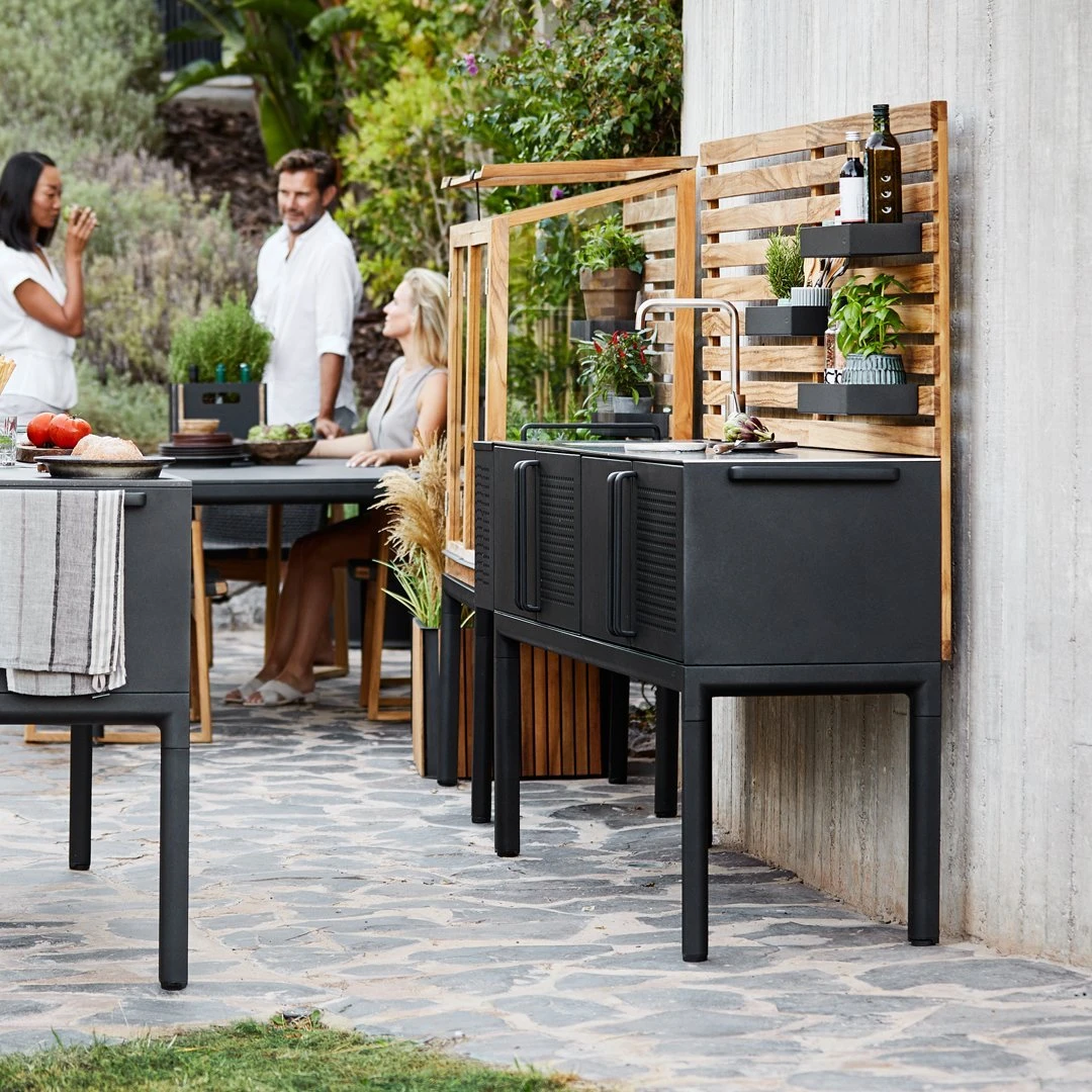 The Drop series designed by Cane-line design team consists of a collection containing an outdoor kitchen concept and elegant outdoor tables. The frame of the series is made of custom-designed profiles that ensure a strong construction and elegant finish. The series is inspired by the drop shape that gives a profile with both edges and soft curves. The Drop Kitchen is an impeccable outdoor kitchen, with a stylish yet vibrant and inviting expression. With Drop, Cane-line moves another indoor room outside, in order to extend the time spend with family and friends outdoors.