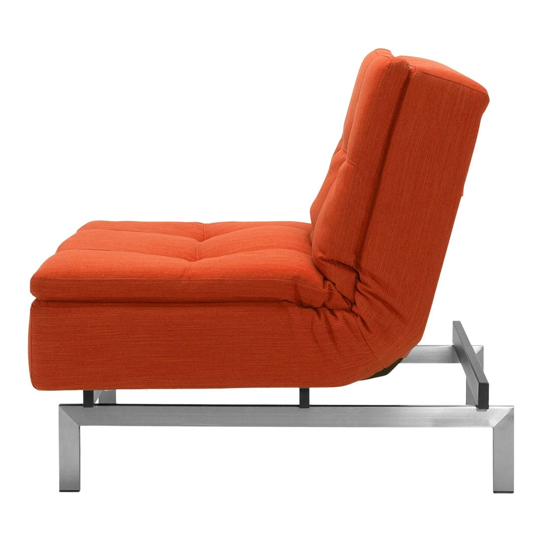 The strict lines complete the purity of the composition resulting in an original character based on the traditions of Danish Design. The stainless steel legs give the composition a trendy, urban appeal. The dual purpose of the sofa bed allows for a space optimizing solution that serves daily as a sofa and as a bed for occasional guests.