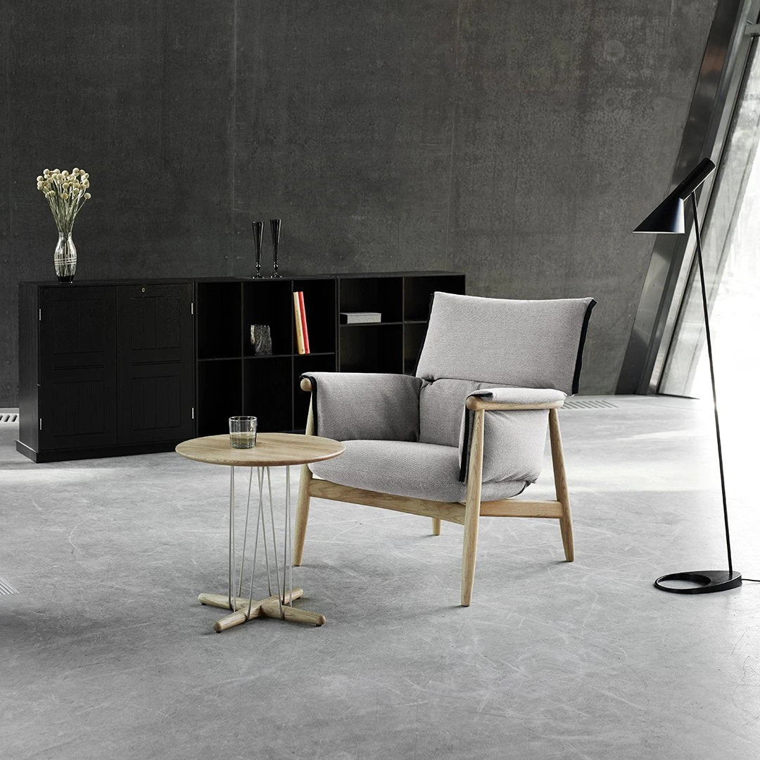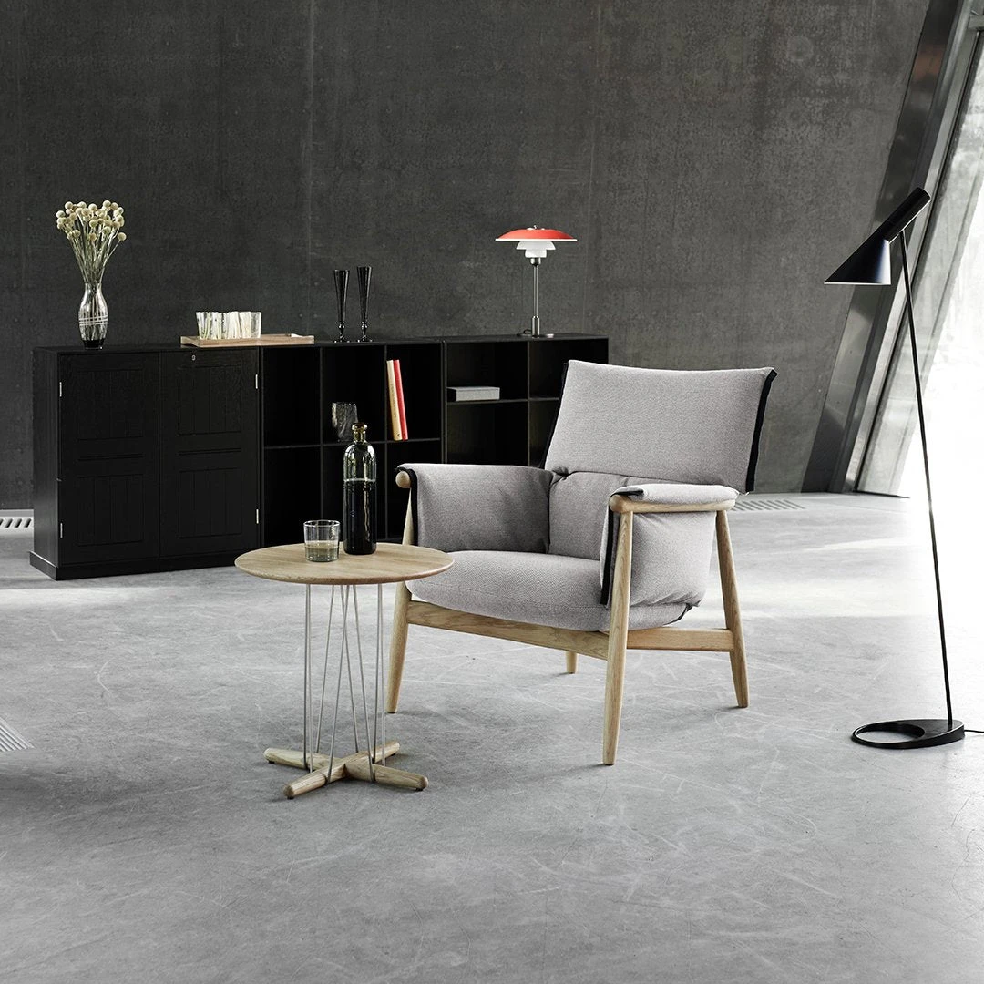 The Embrace Lounge Table E021 is available in two heights – as a low coffee table and a slightly taller and slimmer side table. Both versions highlight the light expression of the Embrace Series, where the circular wooden tabletops seem to float on stabilizing steel structures inspired by kites blowing in the wind. Designed by Austrian design trio EOOS for Carl Hansen & Son, the Embrace Lounge Table fits with any interior, both public, private and corporate.