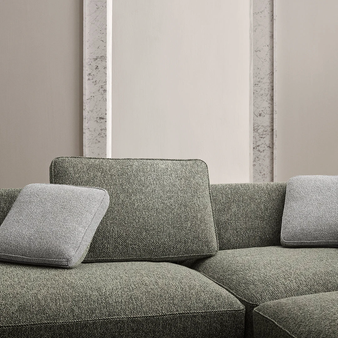 A streamlined wooden frame and unparalleled upholstered comfort strike the perfect balance on the flexible, modular Embrace Sofa, designed by EOOS to adapt to our changing needs and real-life situations.