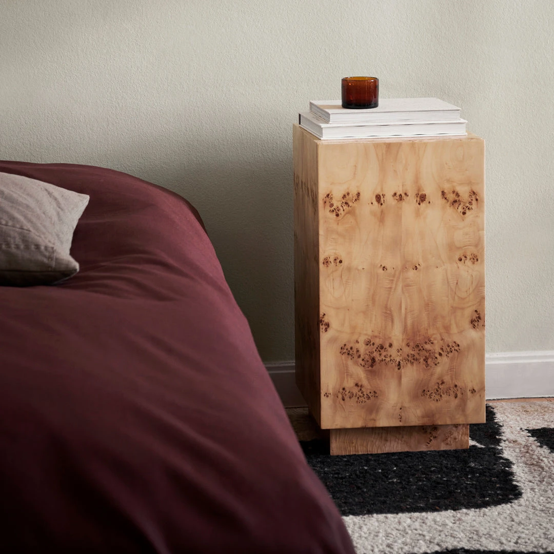 The Burl Side Table has its namesake from the beautifully patterned, FSC™ certified burl wood it is made of. This versatile and sleek piece serves as both a nightstand and a side table, adapting effortlessly to your needs. Its hidden storage space includes an adjustable shelf that can be moved according to the items being stored. The pedestal-like design exudes an elegant expression that enhances the overall aesthetics and ambiance of any space.