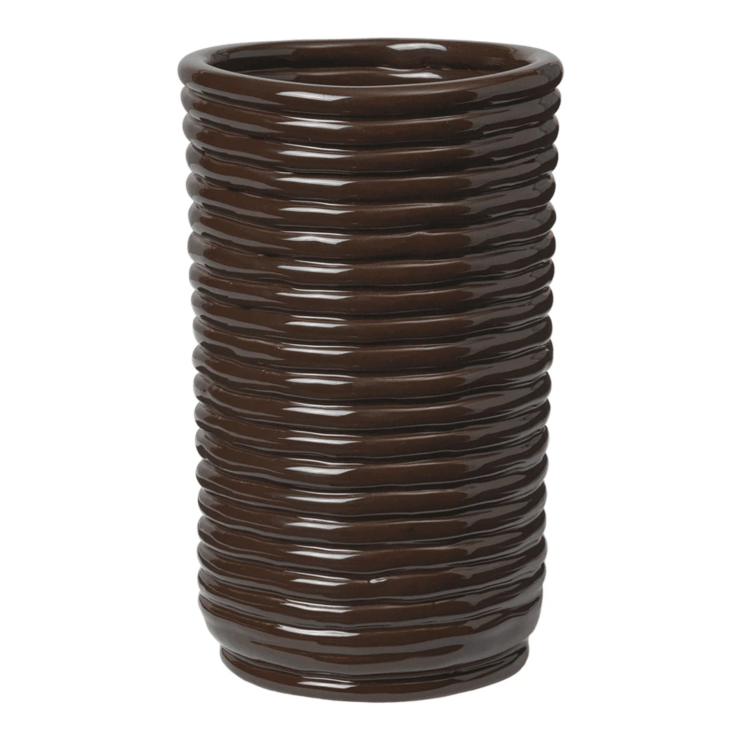 Skillfully crafted from glazed ceramic, the Corduroy Vase brings an element of crafted charm into your living space. The vase is handcrafted from a continuous string of clay that has been meticulously rolled into a cylindrical form. This technique creates a unique texture that beautifully mimics the look of corduroy fabric. Available in various colors, the Corduroy Vase not only serves as a functional item but also as a conversation starter, making it a perfect addition to any home décor.