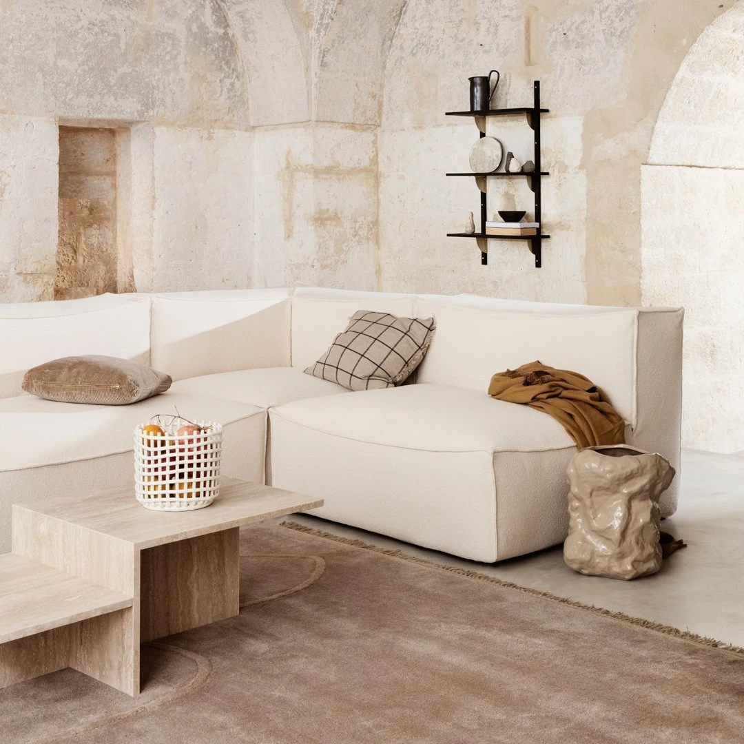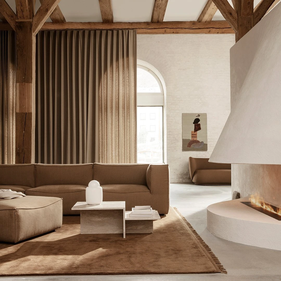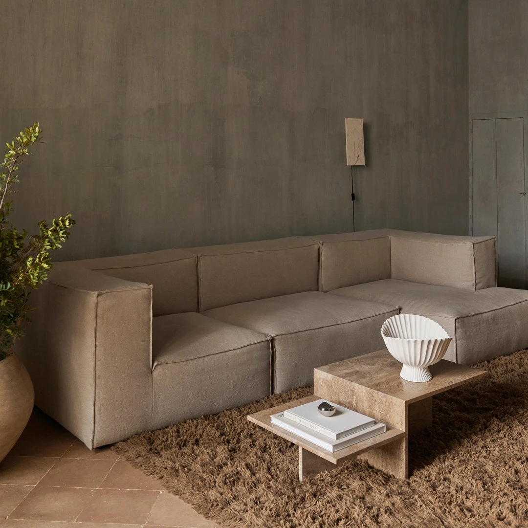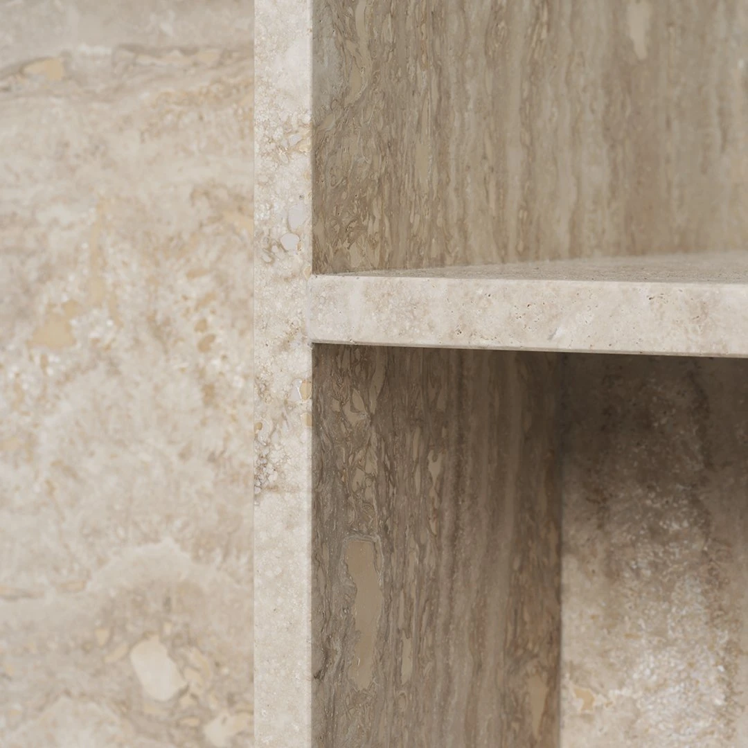 Originally inspired by Japanese minimalism, the Distinct Coffee Table explores the creation of complex structures based on a single element. The minimalist construction creates a contrast to the richness of the travertine’s earthy textures. With the natural and diverse qualities of the sand-colored limestone, it provides rawness and tangibility that highlight the architectural character of the furniture piece.