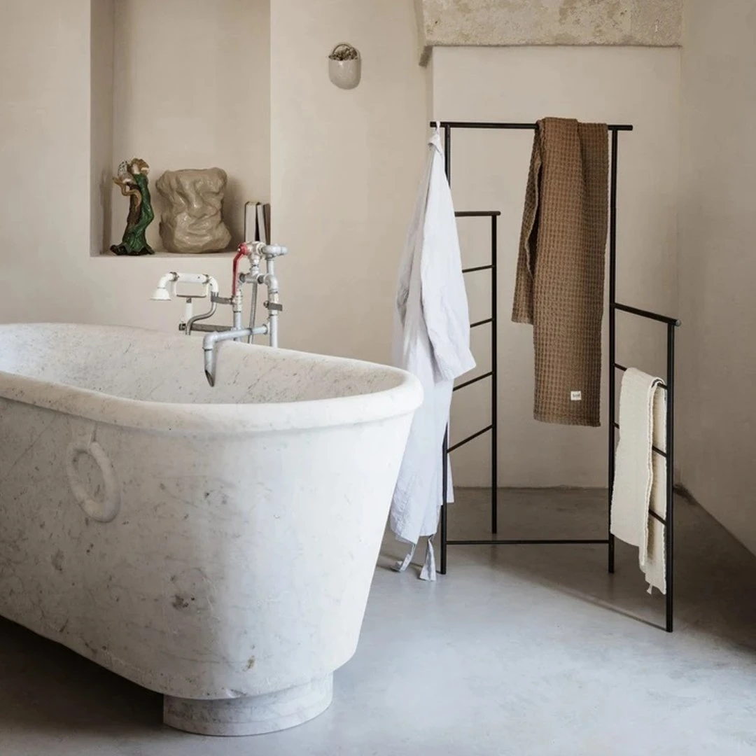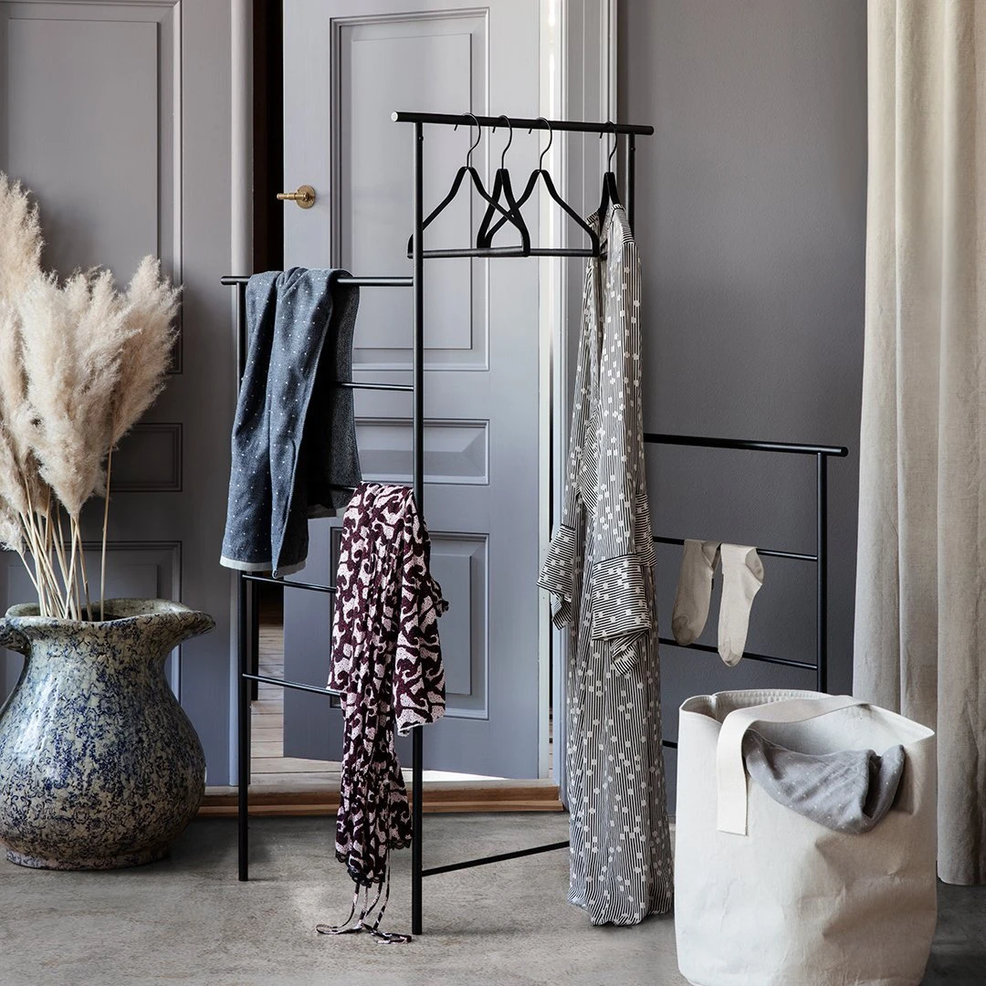Consisting of three panels of sleek, powder-coated metal, the Dora Clothes Stand forms a minimal storage solution with a hint of Japanese aesthetic. Use it as a stylish drying rack, which can be folded so that it doesn’t take up a lot of space when stored. Or use it as a simple room divider that lets you display your favorite garments while creating a beautiful sense of space in larger rooms.