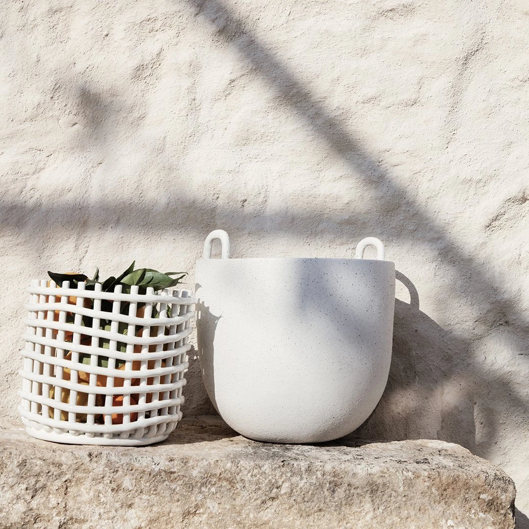 Made with a distinct sort of stoneware with a grainy, raw texture, the Speckle line presents an organic, handmade look and feel. With its fluid silhouette, the pot with two handles mirrors nature’s irregularities, though with the elegant addition of the high-gloss finish. The Speckle Pots forms a sweet home for small plants, but you may also want to use it for storage of smaller items on a shelf or as a decoration on your dinner table.