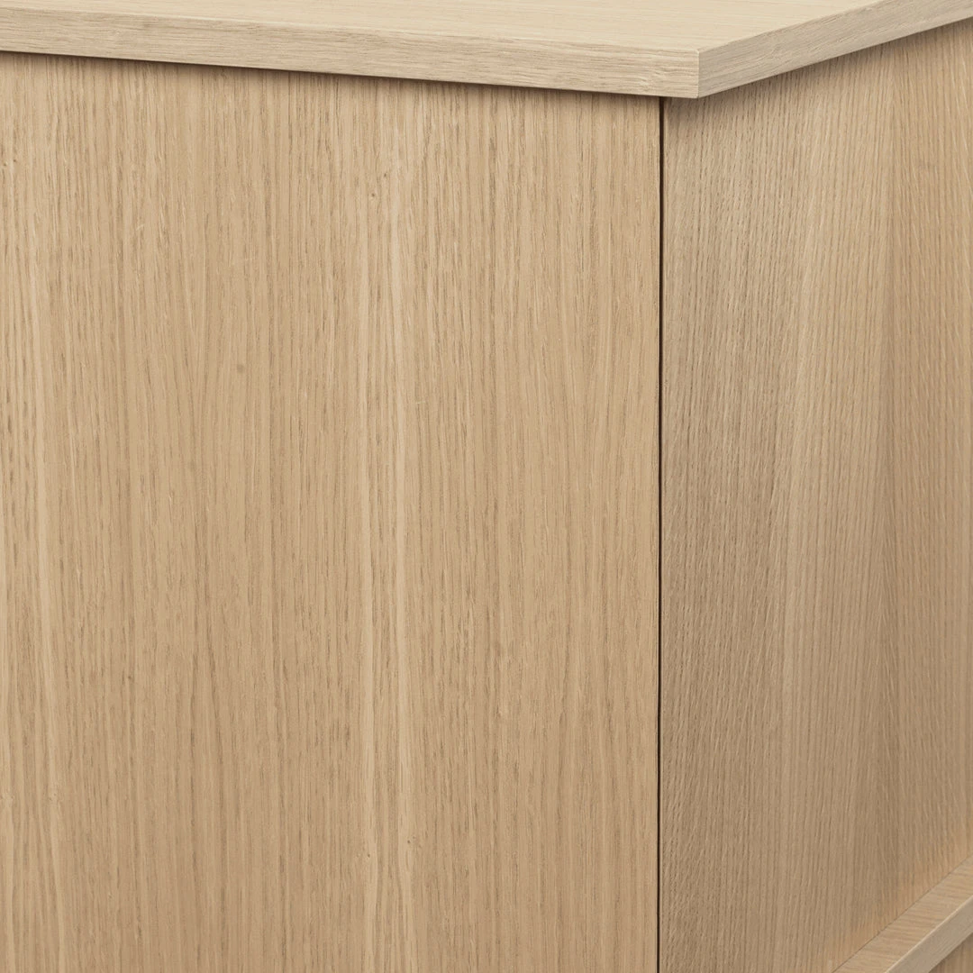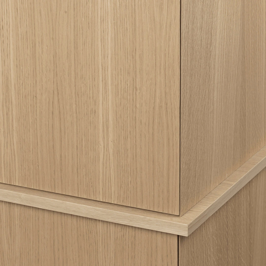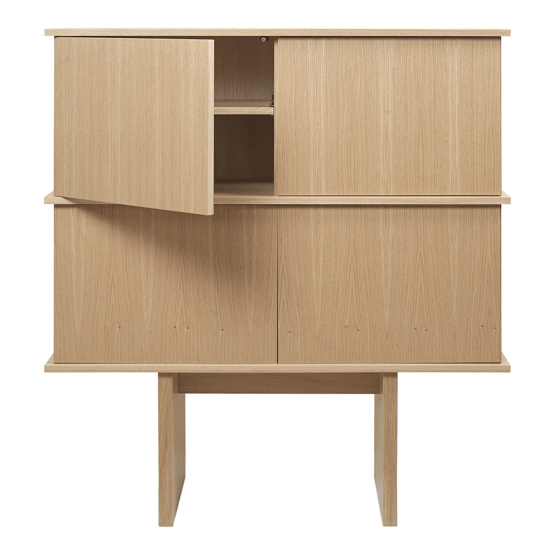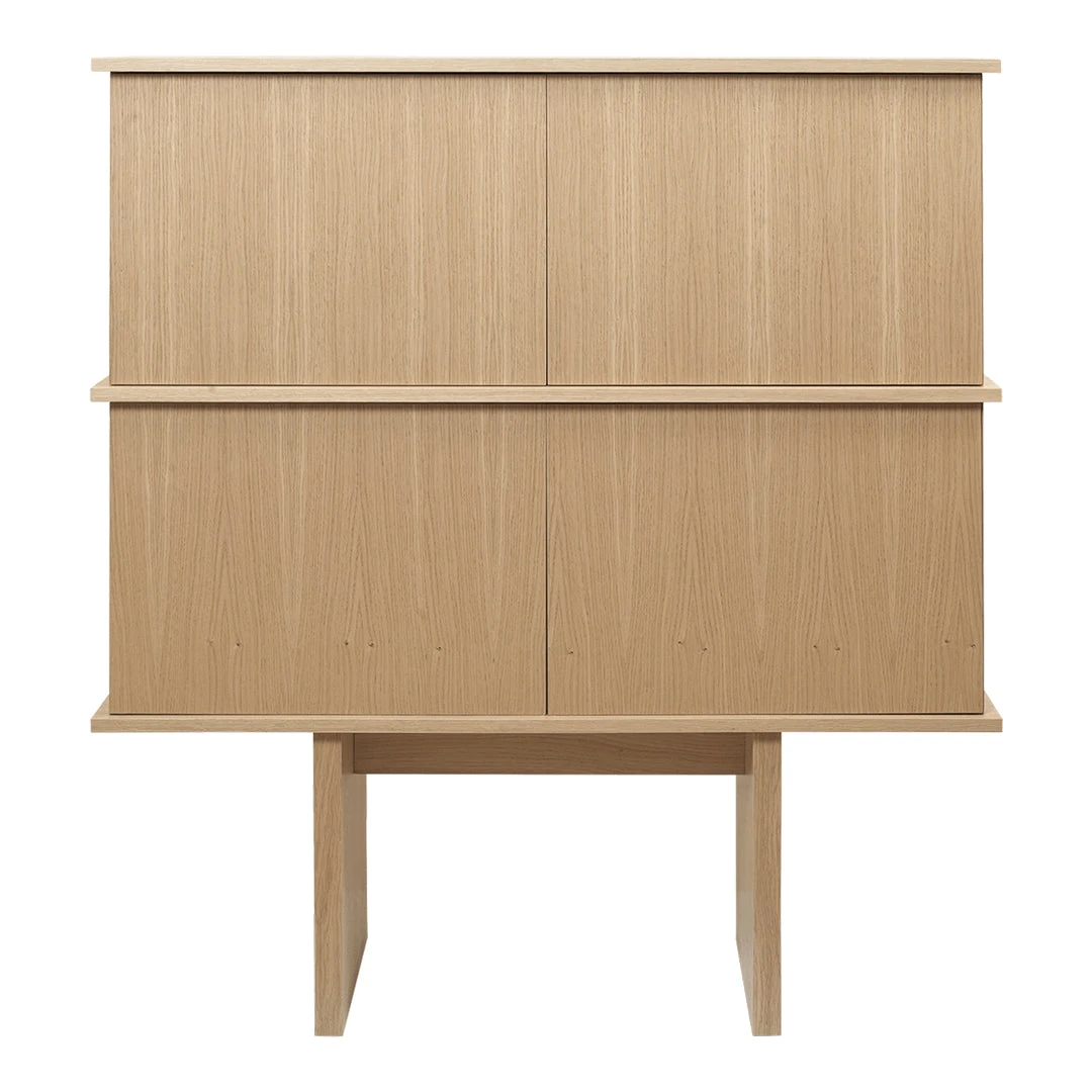Crafted from FSC™ Mix certified oak veneer with an MDP core, the Stilt Cabinet effortlessly enhances any room with its refined and airy presence. Inspired by the architectural pillars that elevate structures above ground or water, this cabinet features elegantly tall legs that bestow it with distinctive and captivating proportions. This design element adds visual intrigue and height, making it an eye-catching addition to your décor. Generously dimensioned, the double Stilt Cabinet makes a striking statement with its clean wooden divisions and is ideal for living rooms, dining areas, or any space requiring additional storage.