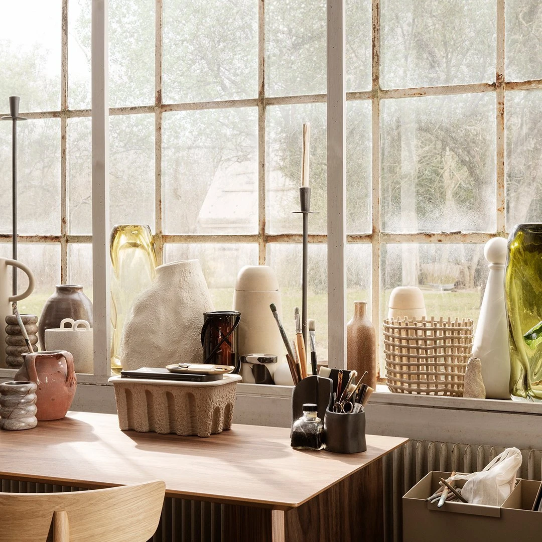 Named after the Japanese word for mountain, the Yama Pencil Holder is a sculptural yet functional piece that is inspired by wild, untamed landscape. Made from recycled casted aluminum, the Pencil Holder features a rough, matte finish that contrasts its fluid and organic silhouette. With three different compartments in varying heights, the Yama Pencil Holder is ideal for stationary but can just as easily be used for storing kitchen utensils, make-up or other bathroom essentials.