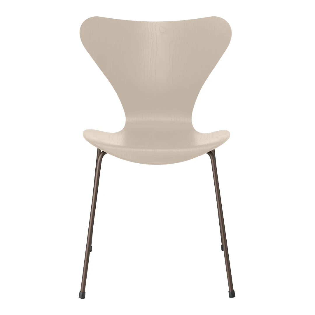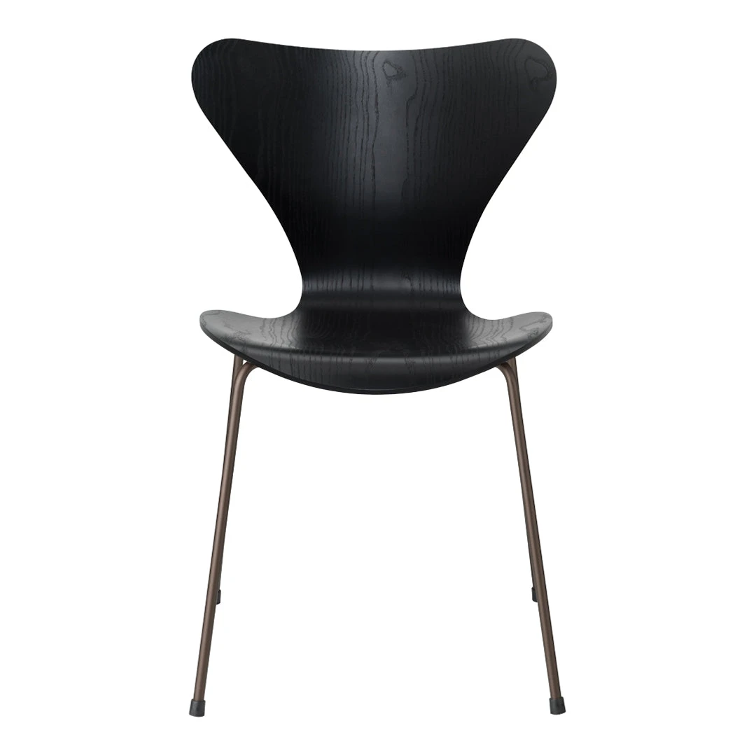 The Series 7 Chair designed by Arne Jacobsen is by far the most sold chair in the history of Fritz Hansen and perhaps also in furniture history. The pressure moulded veneer chair is a further development of the classic Ant chair. The four-legged stackable chair represents the culmination of the lamination technique. The visionary Arne Jacobsen exploited the possibilities of lamination to perfection resulting in the iconic shape of the chair. Series 7 represents the chair in the Fritz Hansen collection with the widest range of applications.