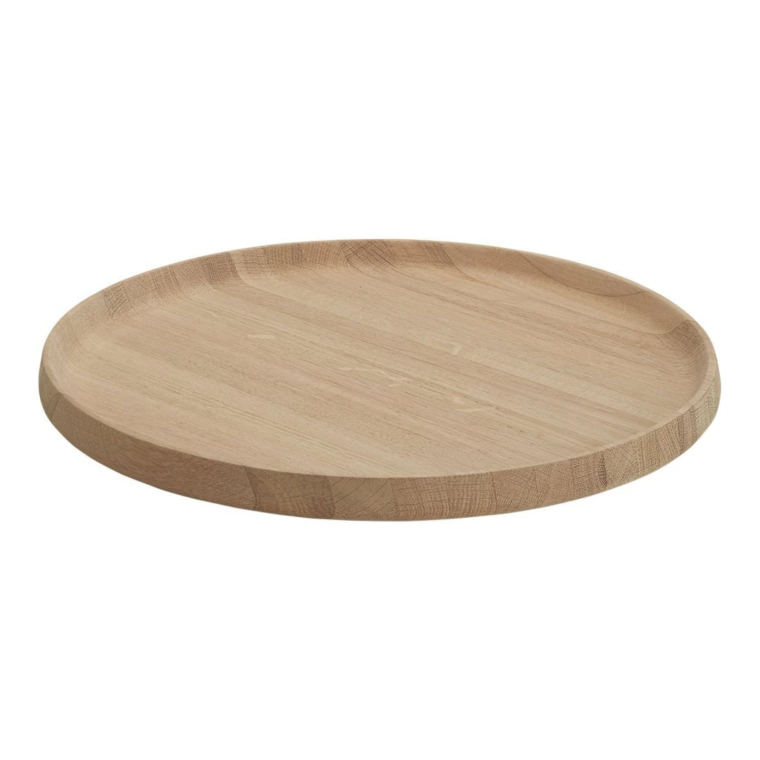 The Nordic Tray comes in two different sizes. The wood is characterized by its closed structure and this makes the tray both strong and resilient. The Nordic tray’s circular shape and high edges can contain bowls and dishes, and invites to serving fresh fruit, cheese and charcuterie or other types of appetizers. Small rubber feet are placed under the tray, which gives it a floating expression and makes it easy to lift up from the table again.