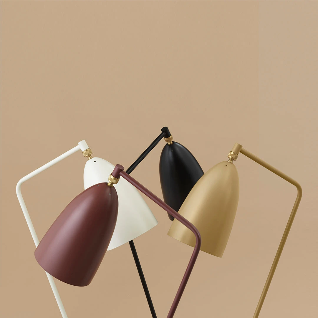 The iconic Grashoppa Floor Lamp was first produced in 1947 by the feminine pioneer Greta M. Grossman. The unique tripod stand of the Grashoppa Floor Lamp is tilted backward and gives the impression that the lamp is somehow alive and stalking its prey. Being one of Grossman’s most iconic designs, the authentic lamp has an elongated conical shade that rotates to direct light where needed.