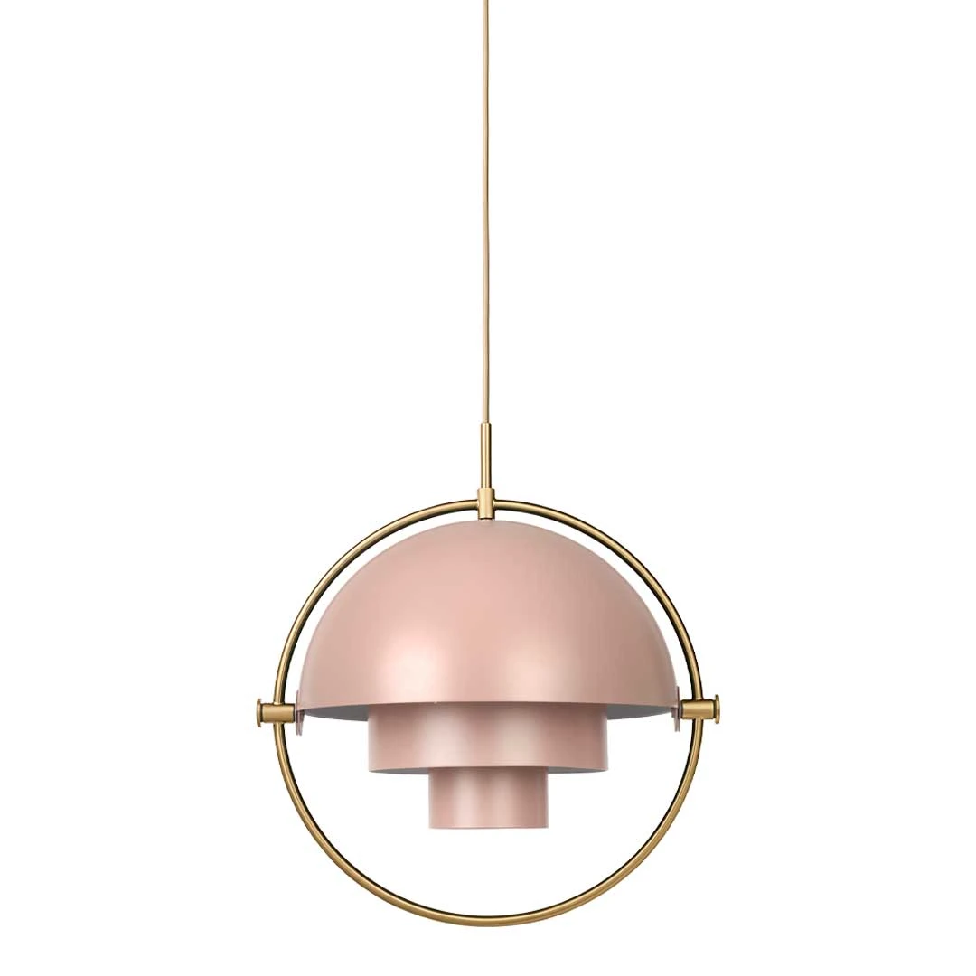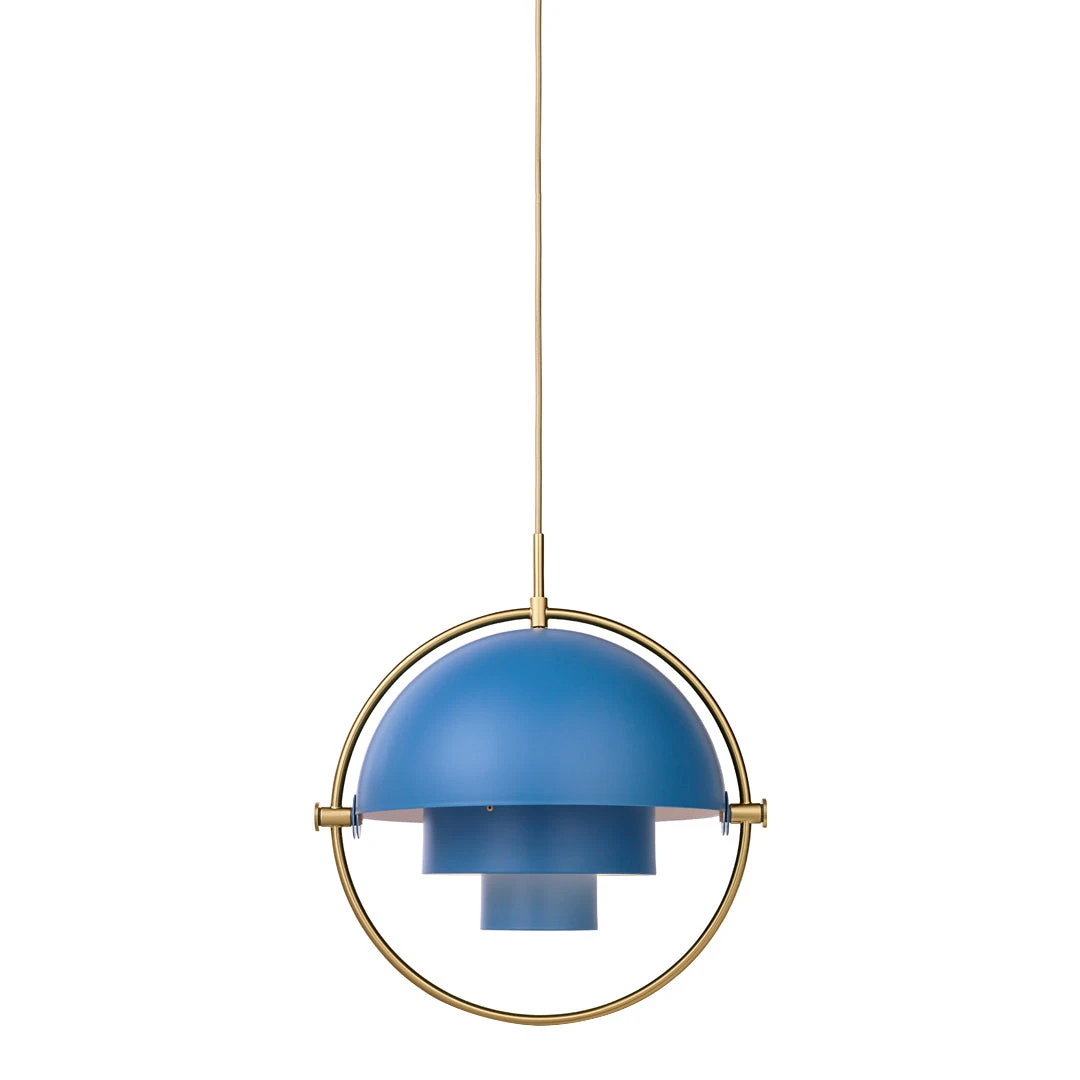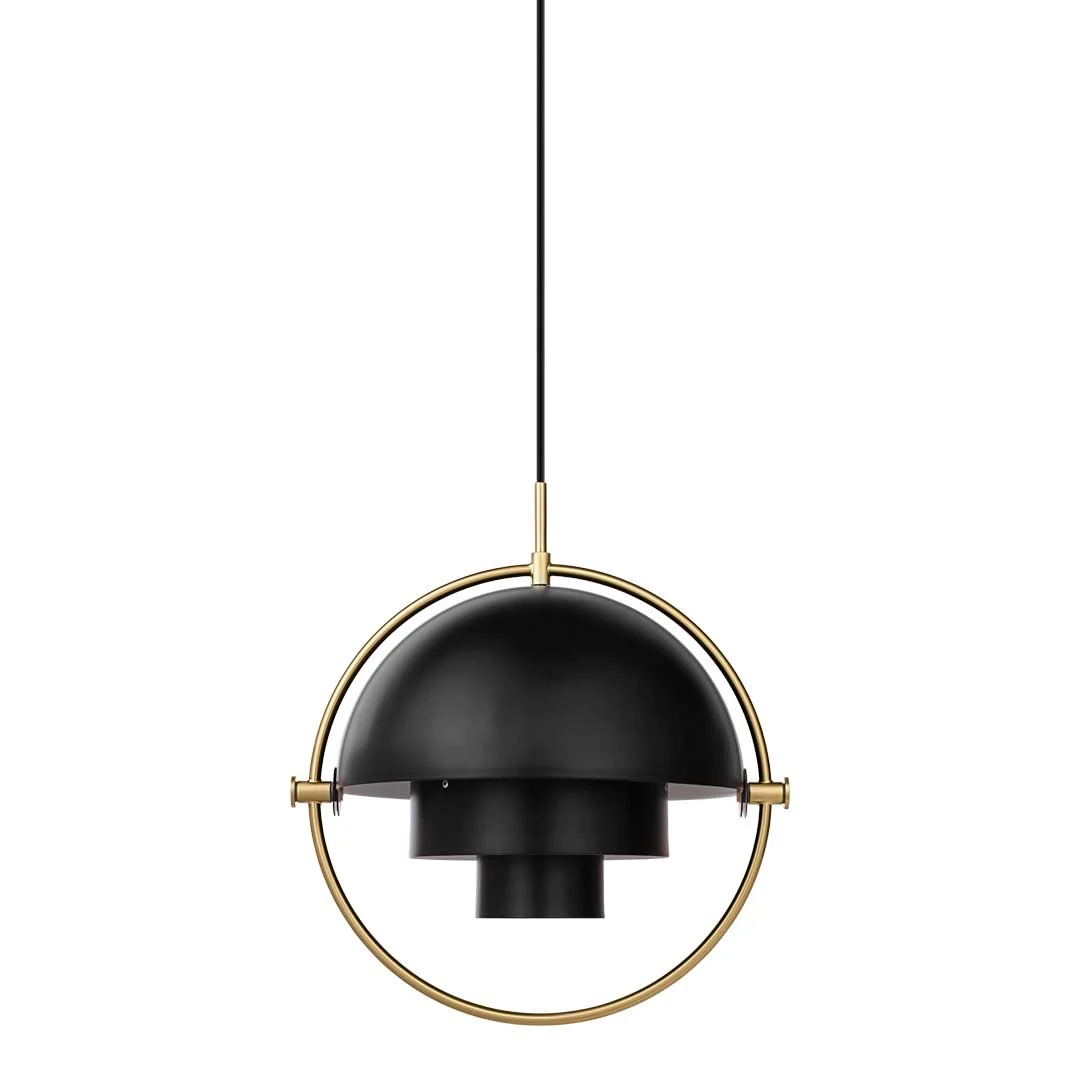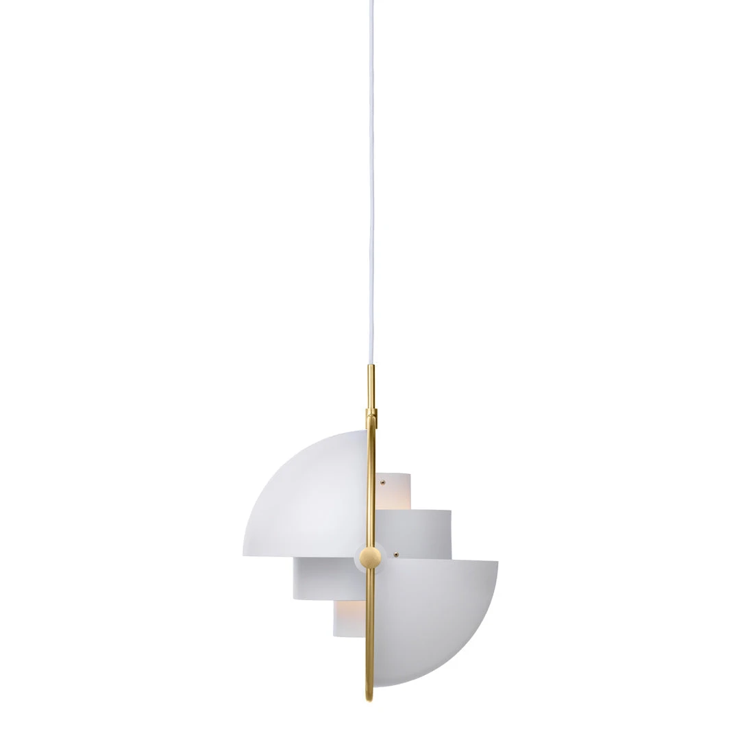 The Multi-Lite Pendant embraces the golden era of Danish design with its characteristic shape of two opposing outside, mobile shades that enable creating a personal installation and a wide range of lighting values in a room. By individually rotating the shades, the Multi-Lite Pendant can be transformed into multiple combinations where the light can be directed upwards, downwards or exude an asymmetrical art light. The Multi-Lite was first drawn in 1972 when Louis Weisdorf did an exception to his own design custom of using multiple repeating elements. Instead, it reflects his passion for diversity. Two cylindrical shapes lay the foundation of the lamp and a metal ring encompasses it and anchors the two quarter-spherical shades, which ultimately completes a picture of an iconic design with multiple purposes. The Multi-Lite Pendant has a timeless expression that fits into any domestic setting.