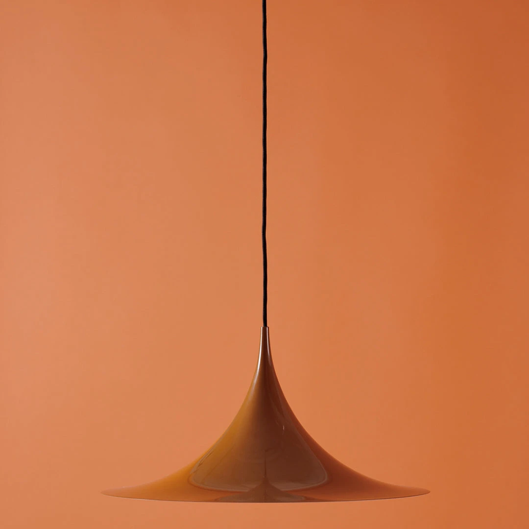 The Semi Pendant is a unique pendant lamp, based on two quarter-circles put together, back-to-back. It’s distinctive arch-shaped, enamelled metal shade creates a diffused, cone-shaped light, ideal over a dining table or kitchen work surface. With its lightness of form, unique timeless design and range of colours and sizes, the Semi Pendant is extremely versatile and well suited to both private and public spaces. The Semi Pendant was designed in 1968 as a product of the creative partnership between Claus Bonderup and Torsten Thorup. Reacting against the soft organic forms, the so-called cosy era, that was dominating Denmark at the time, Bonderup and Thorup wanted to create a lamp that incorporated sharp, clean lines and a geometric shape. Their design was submitted for a competition at the Royal Danish Academy of Fine Arts, School of Architecture and won first prize. In the 1980s the pendant achieved great success and became, at that time, the best-selling Danish design and gained worldwide recognition and iconic status.