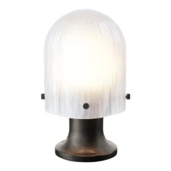 Available with brass shade. Glass diffuser at the bottom softens the light downwards.