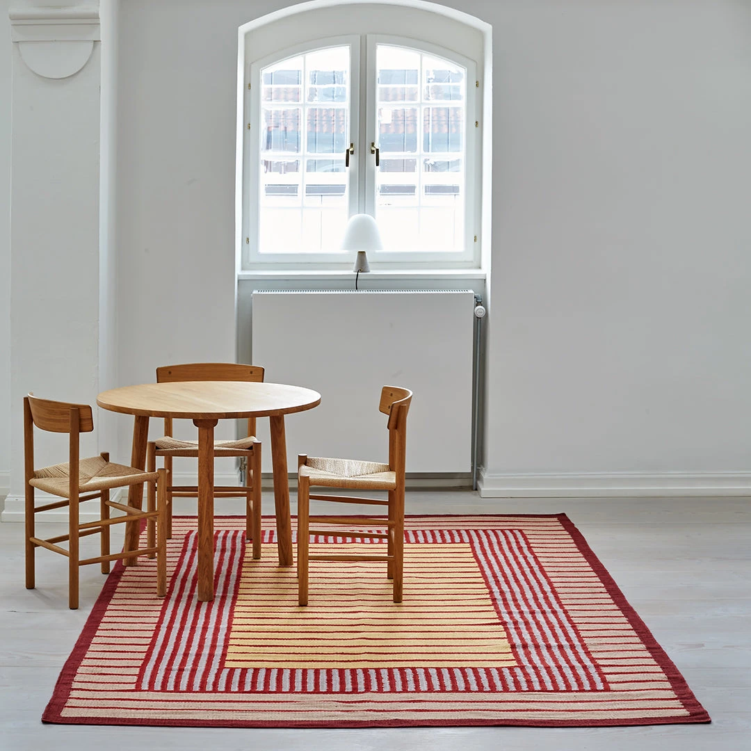 The Hemp Collection by Tanja Kirst is handwoven with Italian hemp yarn. Each thread consists of 50 thin threads spun together and dyed in bio color. The collection is part of an ongoing project investigating how the familiar hemp plant can be transformed into durable and sustainable woven textiles. The fact that hemp requires little water, can be cultivated without fertilizer and improves soil structure and adds nutrients as it grows – makes the hemp plant important in the aim for a more sustainable textile production. Handwoven in a flat weave construction with color and weft effect.
