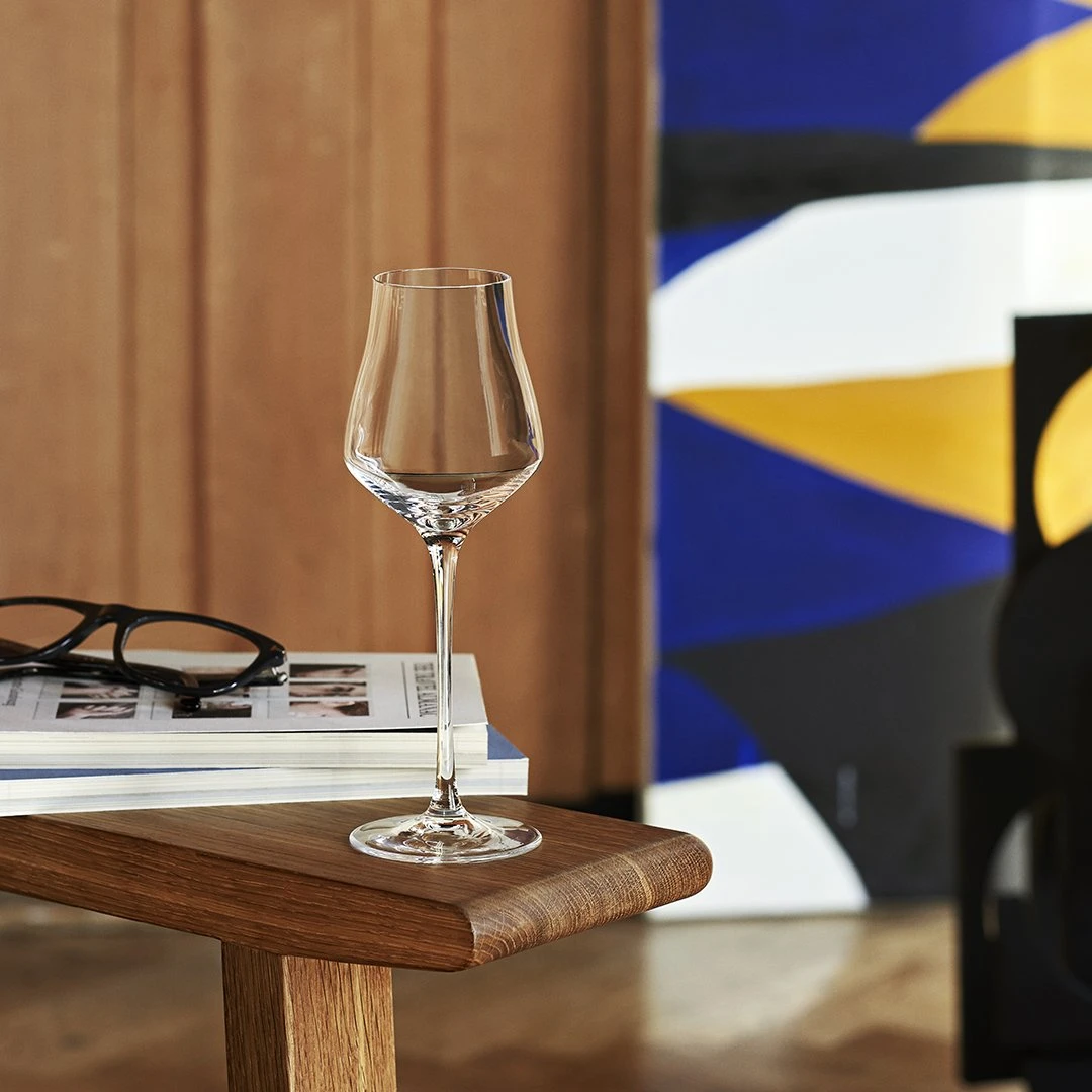 Here, you can find the latest addition to Holmegaard’s popular Perfection collection. These spirit glasses, shaped from machine-blown glass, add a light and elegant touch to any table. The tulip shape is easy to hold while gradually warming the contents of the spirit glass. The narrowing at the top forms the perfect opening while in use and for preserving the aroma of the spirit. These spirit glasses, which can hold 24 centilitres, are available in a height of 21 centimetres. The design, with its subtle pouring line incorporated into the shape, also indicates the perfect quantity to pour into the glass.