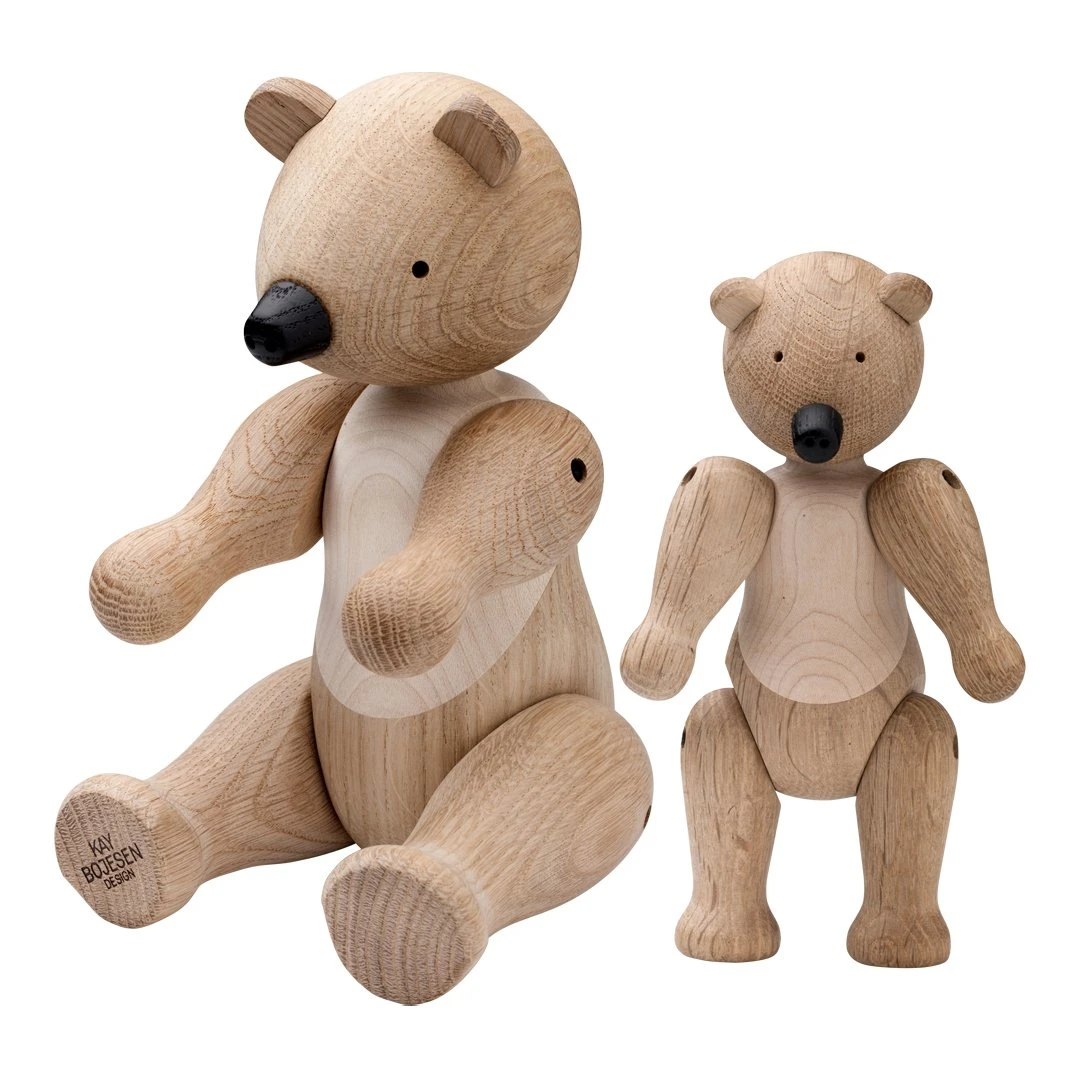 Kay Bojesen’s friendly Bear with open arms was born in 1952. The range includes a wealth of imaginative wooden toys and has a very special appeal for both children and adults. For christenings, birthdays, school graduates, anniversaries and weddings. A classic and a dear friend for life – from being a popular toy in the playroom to a much-loved design icon in a future home. The bear now comes in two sizes: Small and Medium.