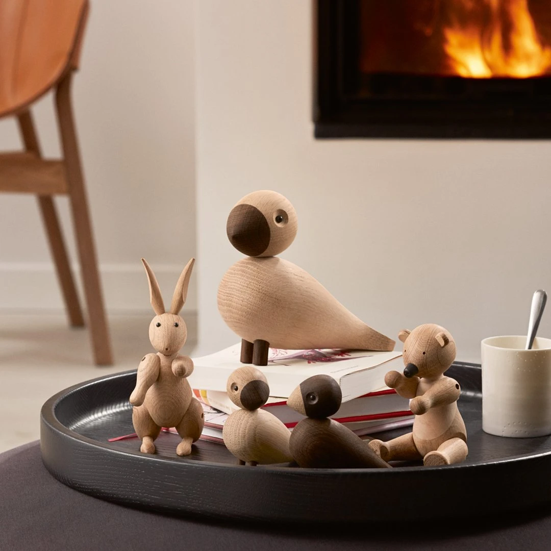 Kay Bojesen created his famous Rabbit in 1957 – and the energetic design in many ways marks something special in his iconic design circus. The rabbit managed to become the last figure since Bojesen died the following year, thus ending one of the most original universes in Danish design history. The Red Rabbit with yellow belly and paws is known among collectors as the original painted Rabbit, which with glossy color glow gains even more vitality in the design. The Red Rabbit is joined by a Blue Rabbit in modern midnight blue tones in matte paint.