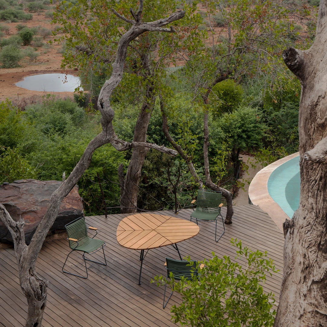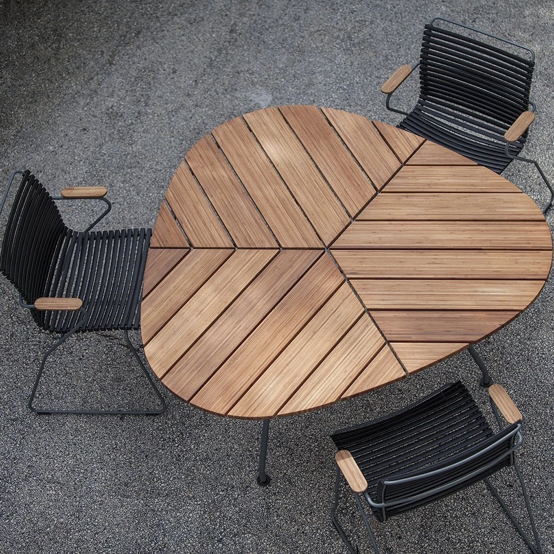 LEAF – A beautiful garden table that really looks like a leaf. The triangular form and the table construction which is drawn in under the table makes it possible to seat 9 people around the table. The bamboo table top is pre-oiled.
