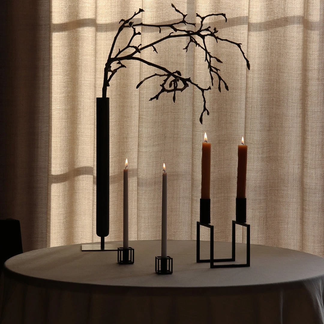 With a sharp sense of contemporary Functionalist style, Mogens Lassen designed the iconic Kubus candleholder in 1962, a piece once reserved solely for family and close architect colleagues. In 1983 he reapproached his own geometric candleholders, and the result was Line, whose shape was conceived through a mathematical formula. The two candleholders form a single line, and the architectural look fits perfectly with contemporary minimalism. Kubus and Line is still crafted in Denmark, and among architects and design connoisseurs it has acheived the status of a modern international design icon.