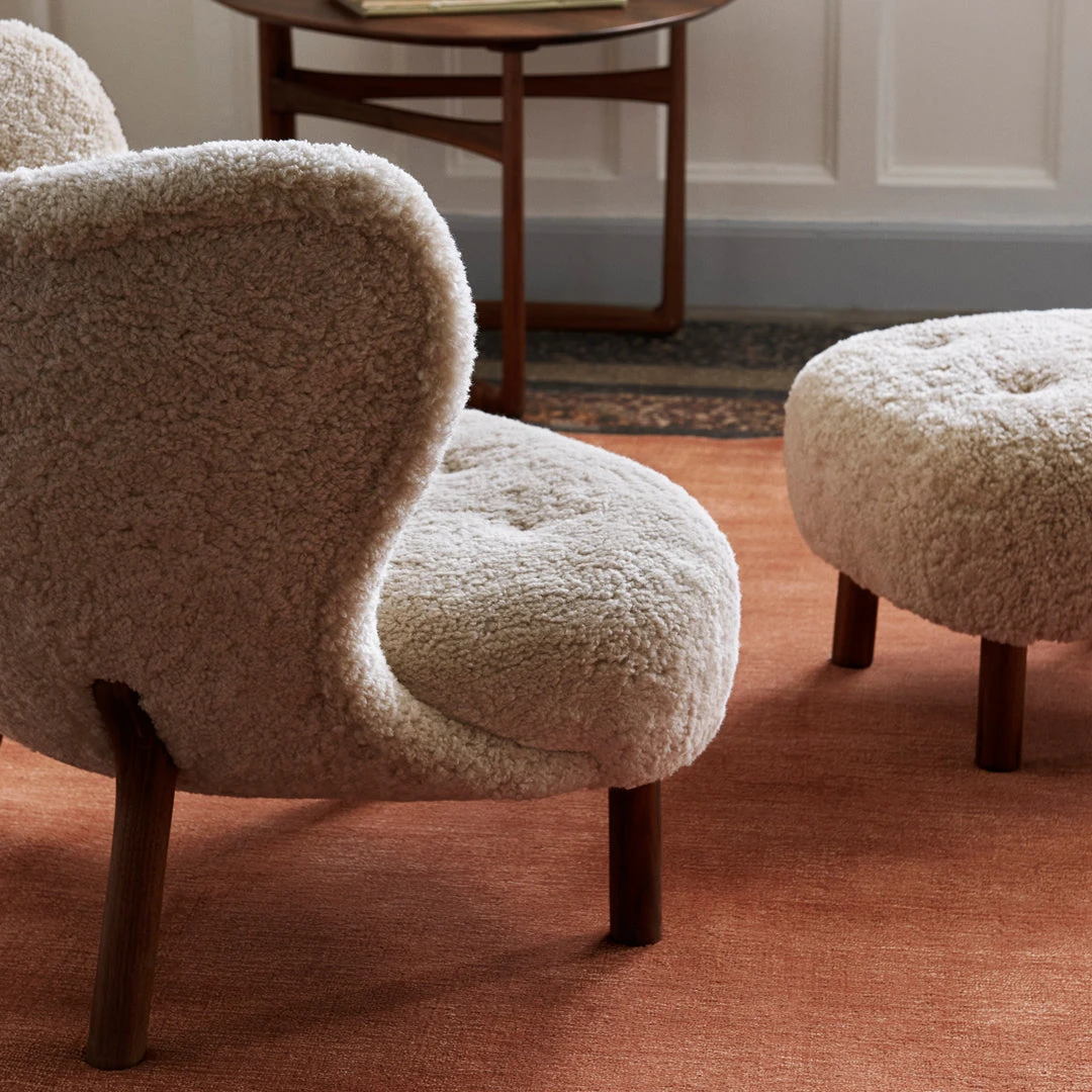 Soft and nurturing, the Pouf is an ideal companion. With rounded legs in either oak walnut, and upholstery in a wide variety of fabrics that include sheepskin, it lends an organic warmth to any interior. Pair with the Little Petra for an elegant lounge seating arrangement.