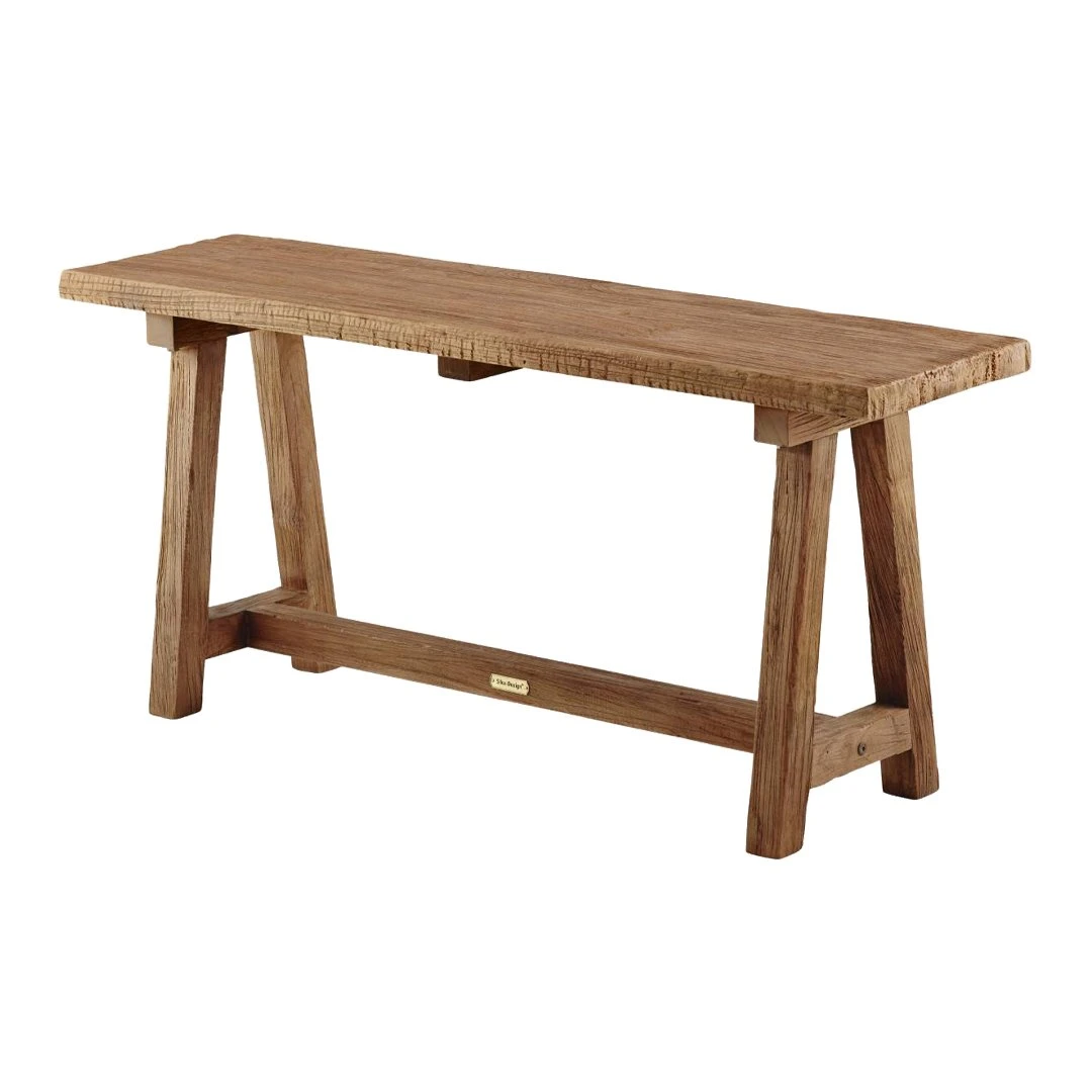 The Lucas Teak Bench is made of recycled teak from old fishing boats and houses. Reparations and fillings add to its unique charm. This versatile piece is ideally suited to an entryway or living area and adds an air of rustic refinement to any décor.