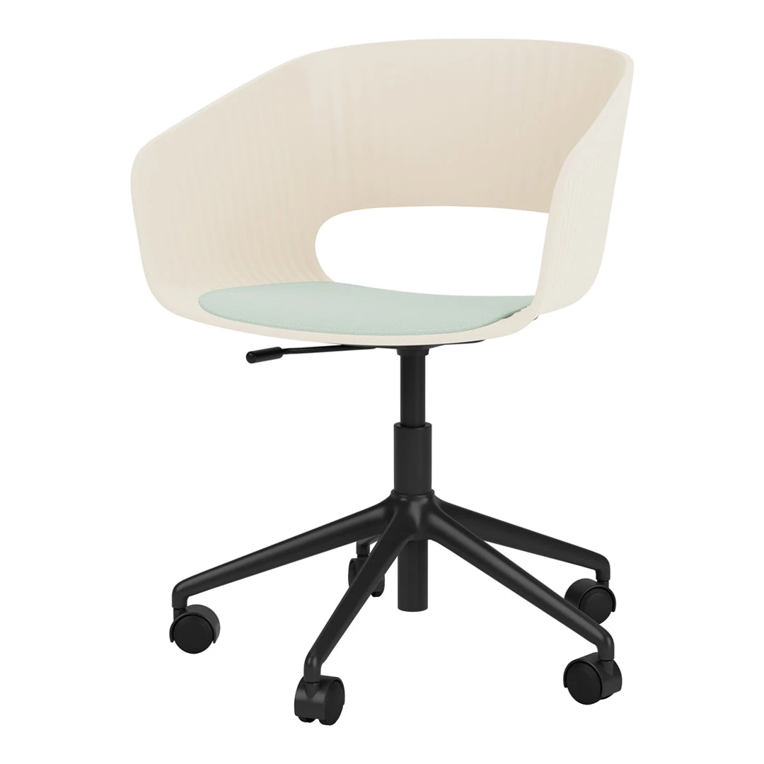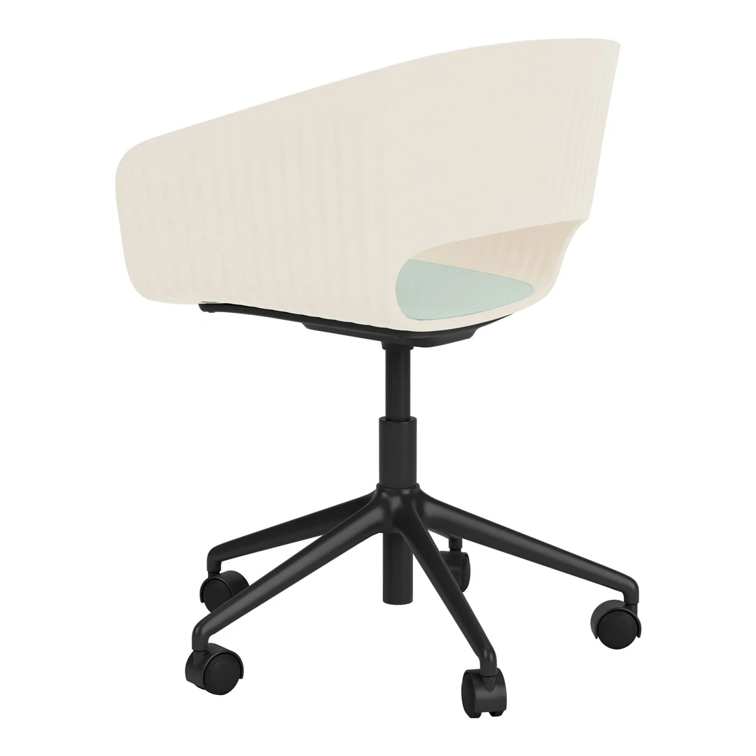 The Maree 405 Office chair has a 5-star base with casters and a seat made in 100% recycled plastic or upholstered in textile.