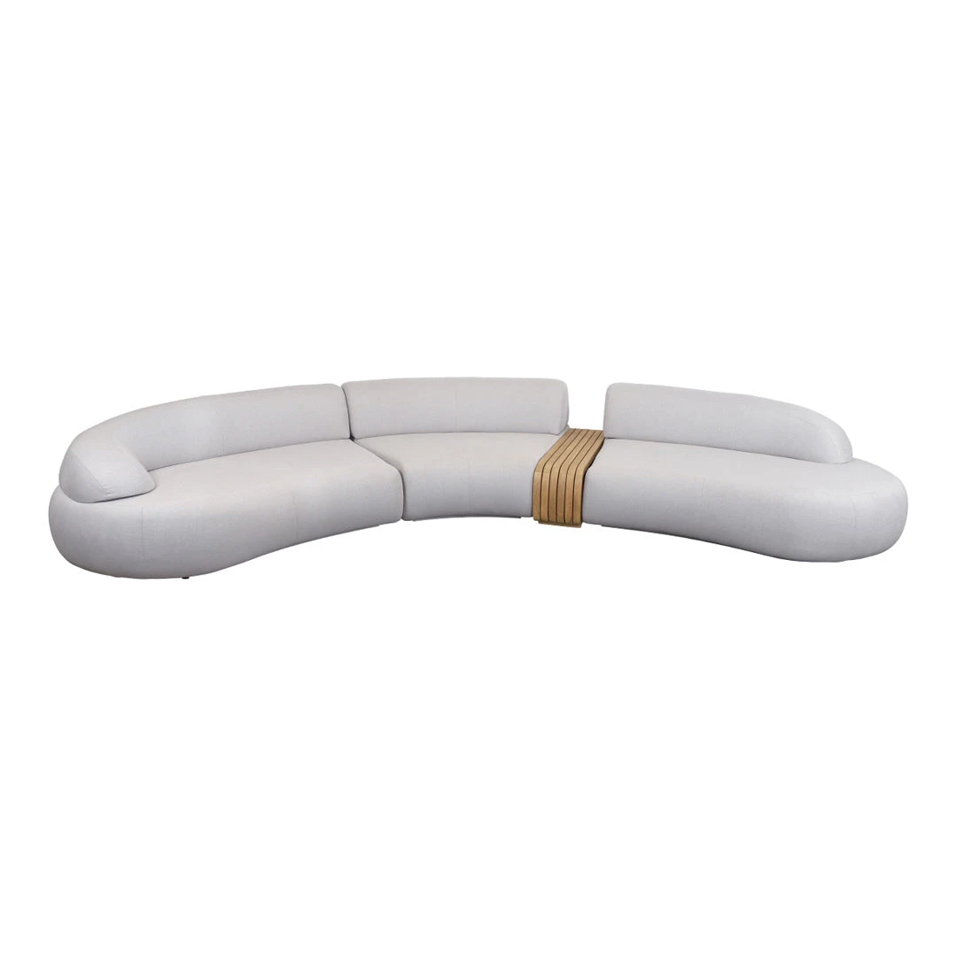 The Mellow sofa by Cane-line Design is a versatile part of the Mellow modular lounge configuration. Mellow module is fully upholstered and features Mellow’s eye-catching design details, such as curvy lines and low seating height. Beneath the soft cushions is a strong aluminium frame, ensuring both durability and comfort. The center module is designed to grow with your needs, allowing you to upsize your lounge by easily adding extra modules. This flexibility makes Mellow perfect for creating a personalized outdoor lounge area that suits your needs and style.