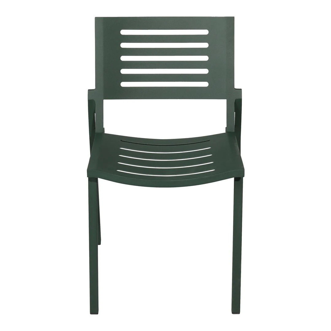 Stackable aluminium chair designed for those who prefer a simple and durable design with excellent comfort. Available in a deep shade of green, making it a compelling companion to Mindo 111 extending table.