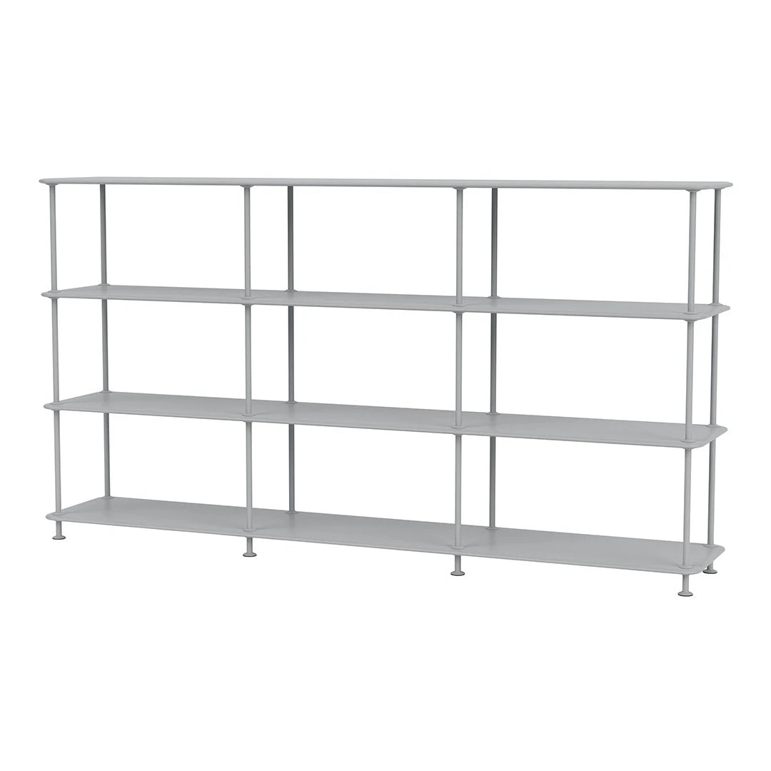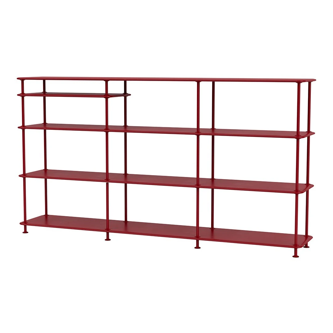 Wide shelving system composed in a simple yet elegant design. The freestanding Montana Free shelf is perfect for the kitchen, the hallway or home office. This freestanding shelving system i three shelves tall and four shelves wide. The shelves are separated by thin tubes for an airy and minimalistic look.The shelvings are perfect for the kitchen, the living room or home office. The Montana Free shelving system is available in lacquer and structure lacquer in the colours Black, New White, Fjord, Black Jade and Beetroot. Style the shelving system with the flexible textile panels in eight different colours that are easily clicked on the tubes.