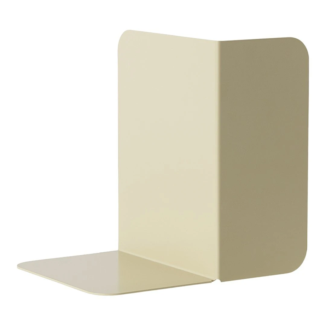 A flexible bookend that can be placed in different ways to support various sized books. The bookends serve as a sculpturally decorative element, adding color and personality to a shelving system. The design and function of these bookends allows it to be suitable for many environments, be it in a living space, office, or reception.
