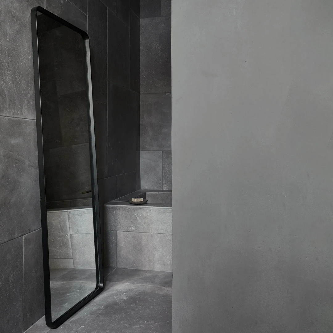 In the spirit of Scandinavian simplicity, the two Danes behind Norm Architects, Jonas Bjerre-Poulsen and Kasper Ronn, always strive to cut to the bone. To find the simplest possible solution without forgetting the beauty of the shape or the details all in order to reach a point where nothing added nor subtracted will make the product better. When you look at Norm Floor Mirror, they stopped at the exact right point. A beautiful piece of design with simple aesthetics, powerful looks and fine details. Designed to lean against the wall or to go, stand or hang wherever you find it best. Powder-coated Aluminum, Glass Mirror, Leather