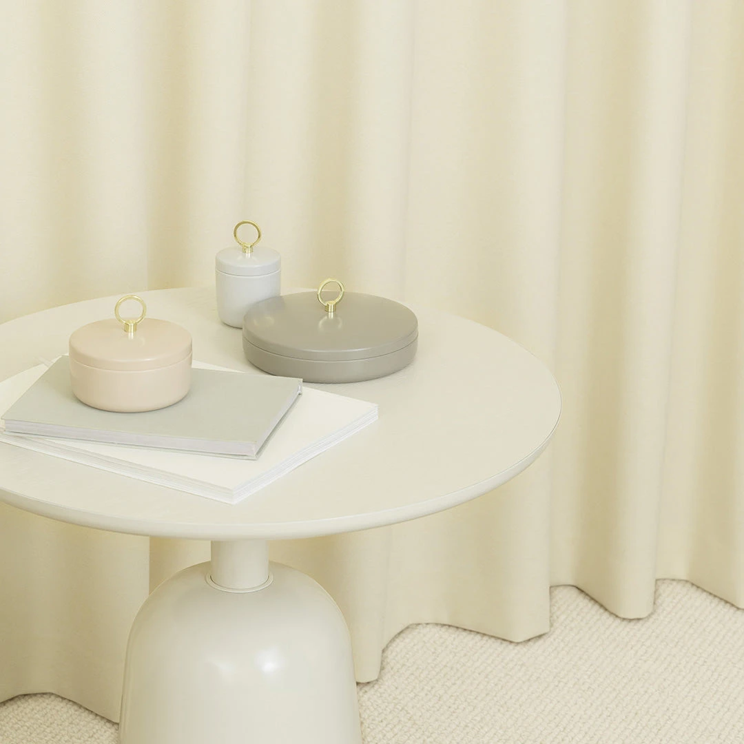 Turn is well-suited for use as a coffee or side table and can be placed on its own or in a group of small tables in a living room or lounge area. The ash veneer tabletop is lacquered in the same color as the steel base. The table comes in three monochrome tones of black, dark gray and a lighter, warm gray, allowing Turn to blend in elegantly with different interior designs.